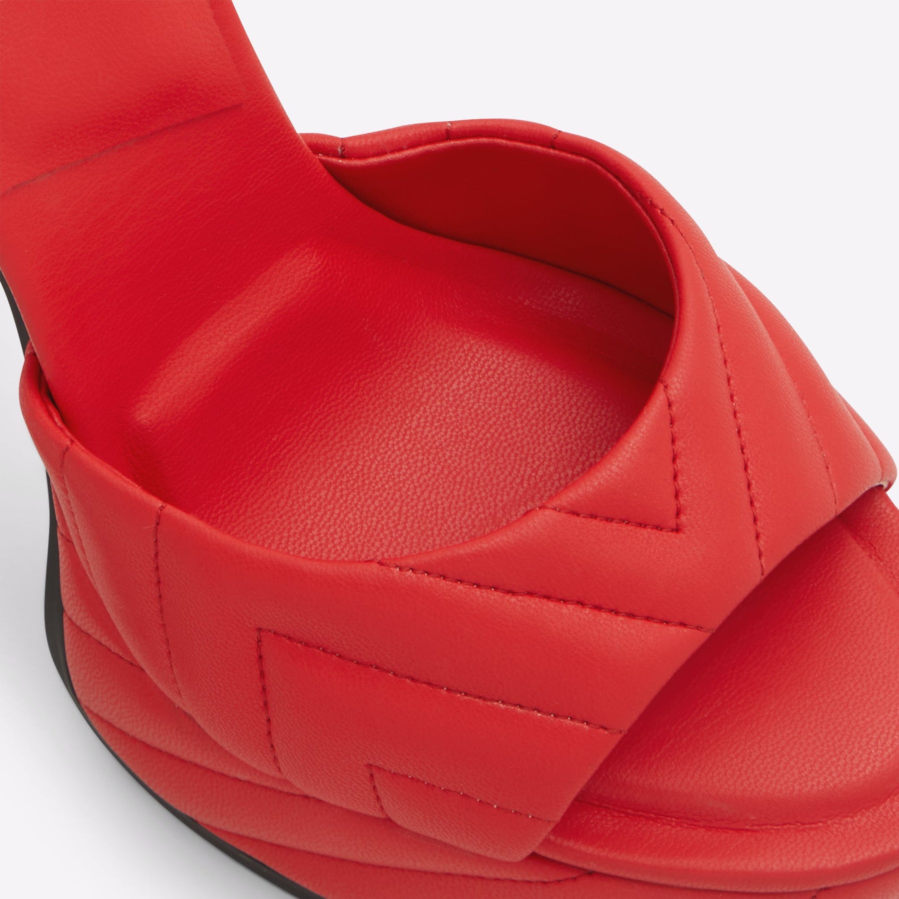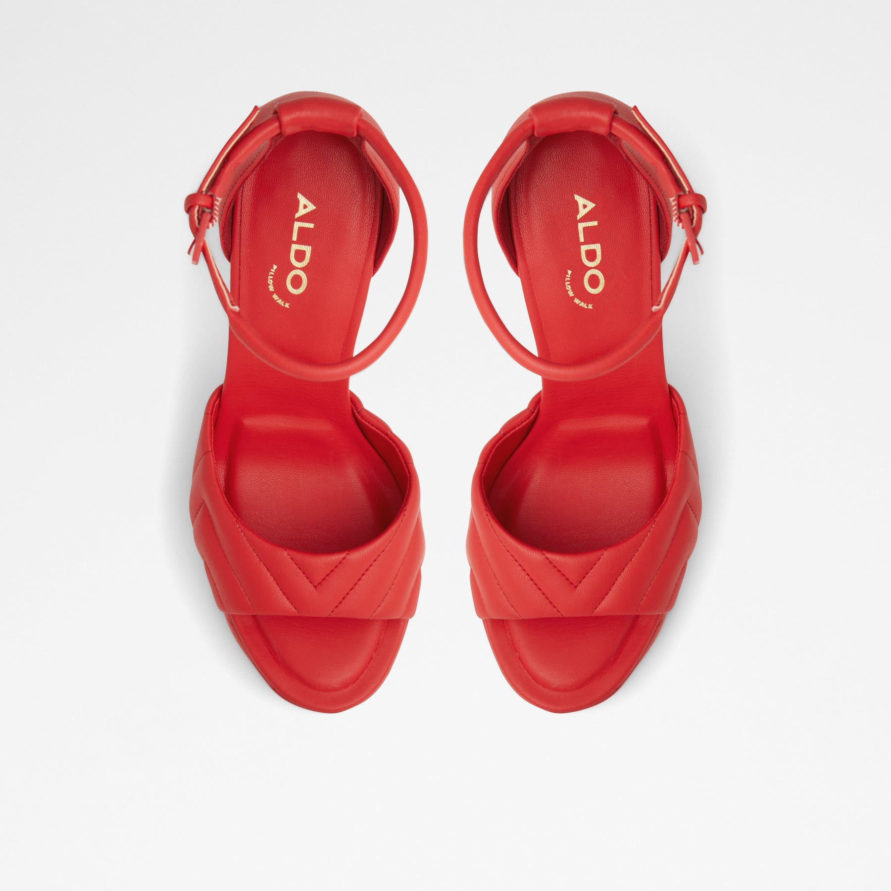 Sandálias MILENA para mulher, em vermelho, de salto em bloco com plataforma, com biqueira redonda e uma textura acolchoada. Com fecho de fivela no tornozelo.