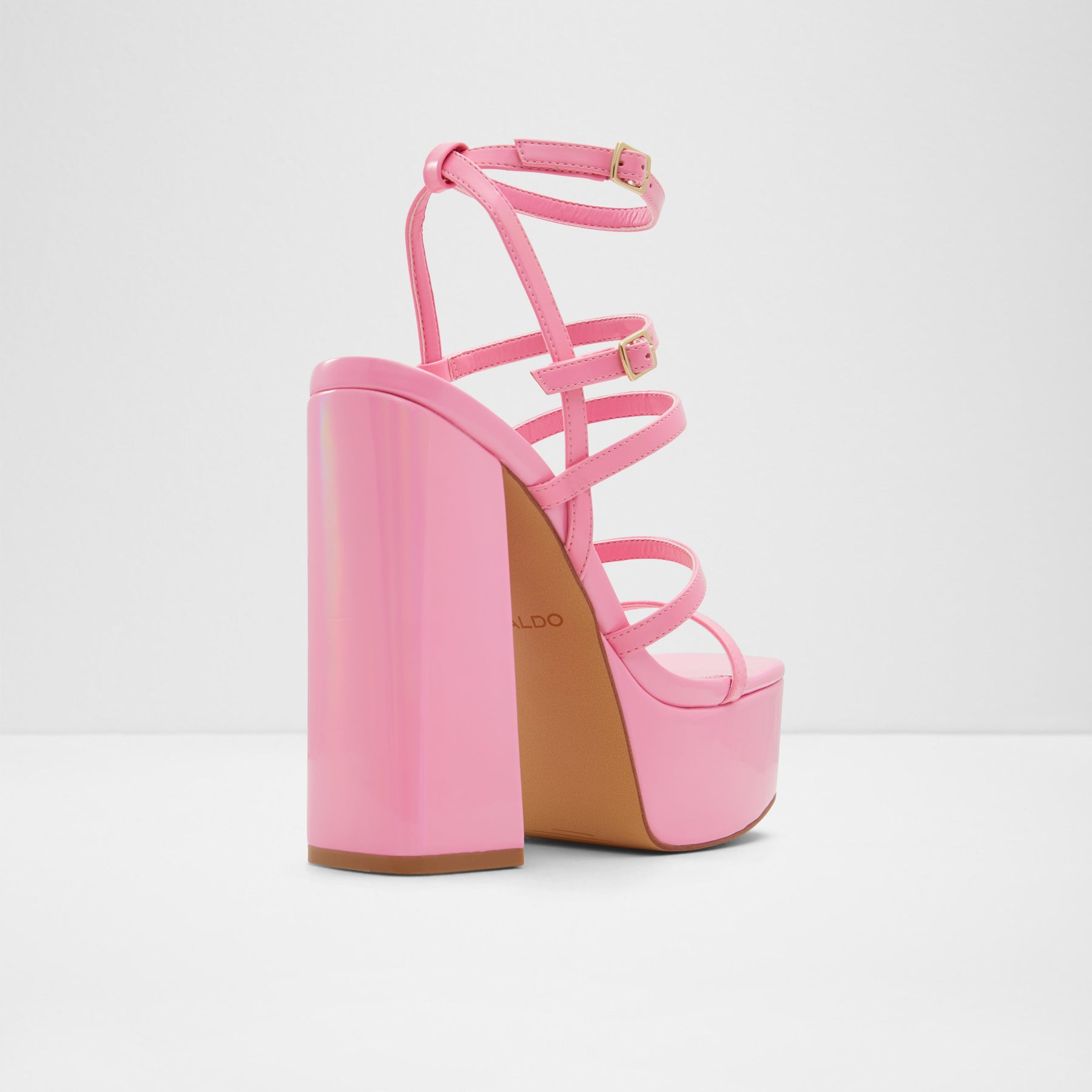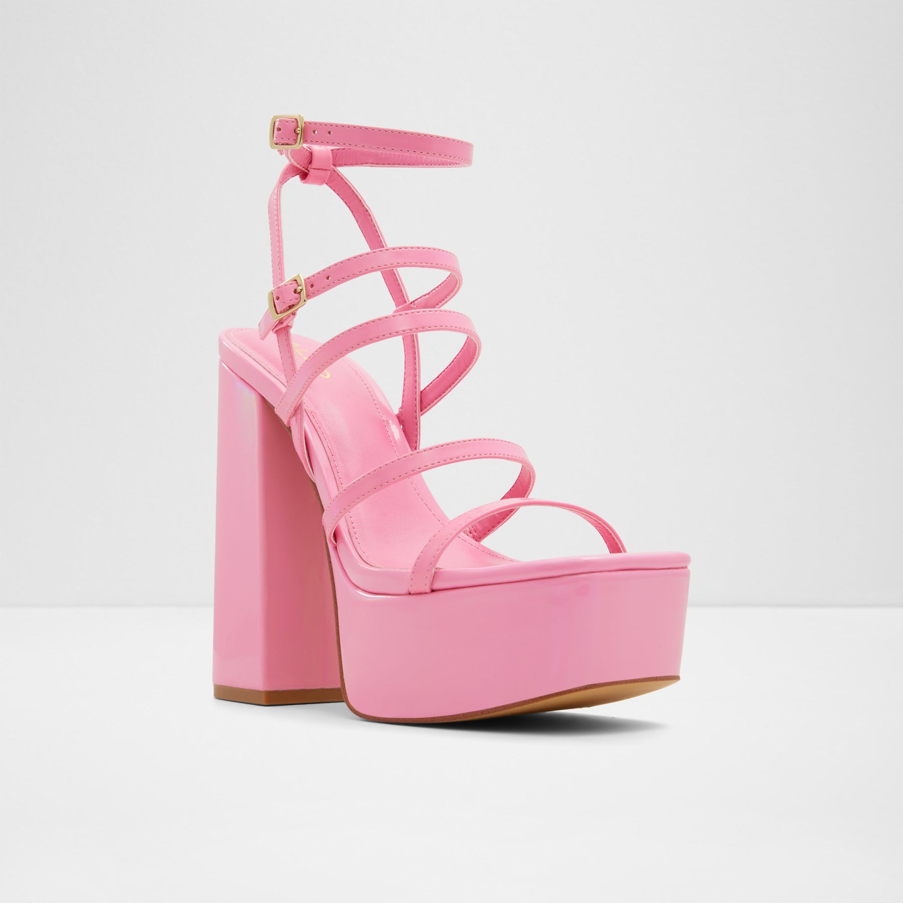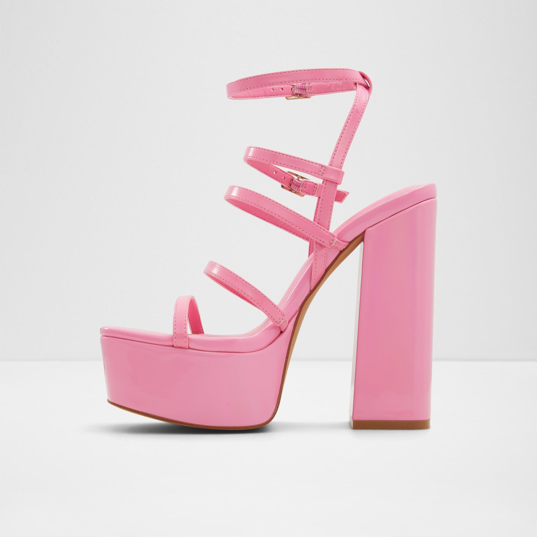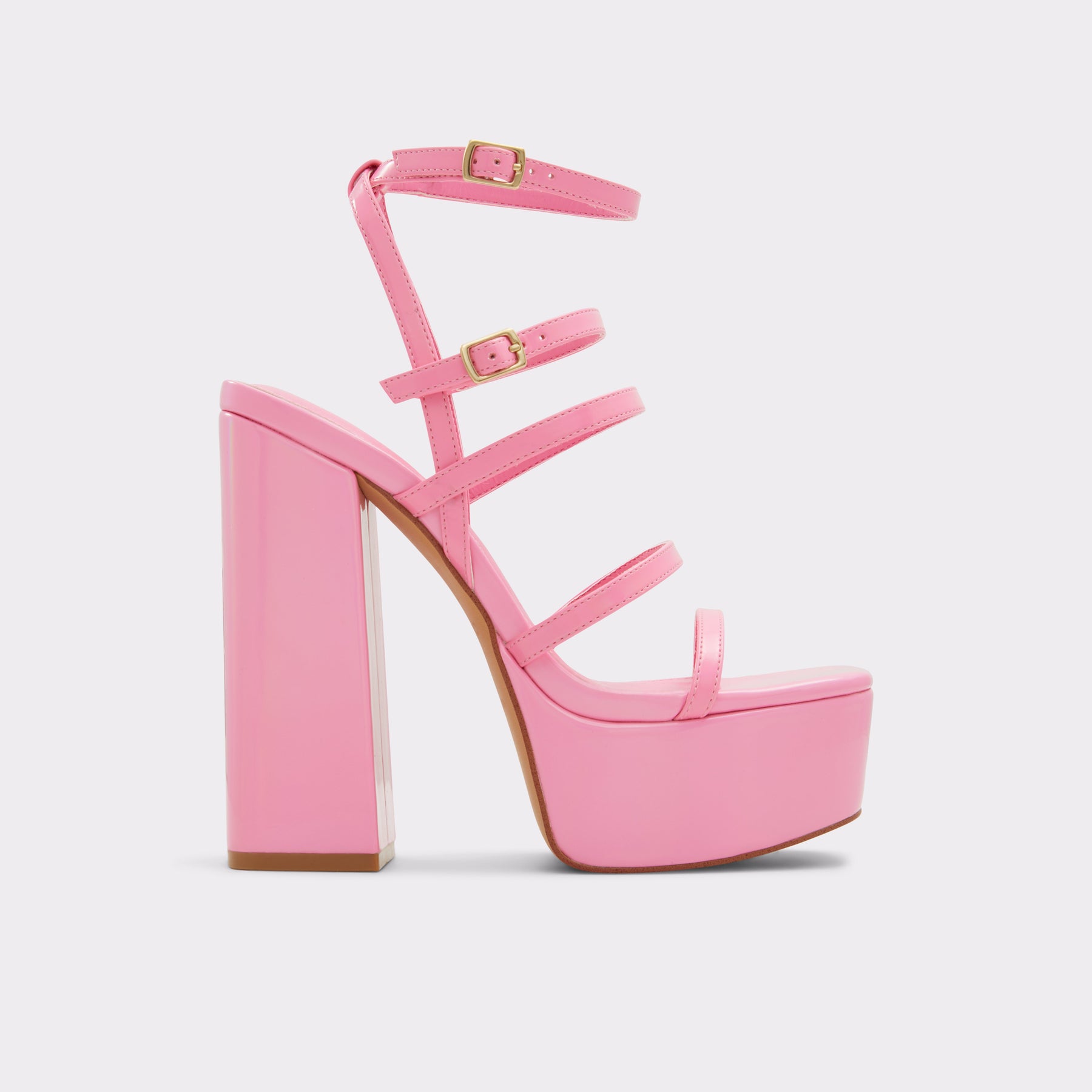 Sandálias em verniz rosa, salto em bloco com plataforma - DARLING