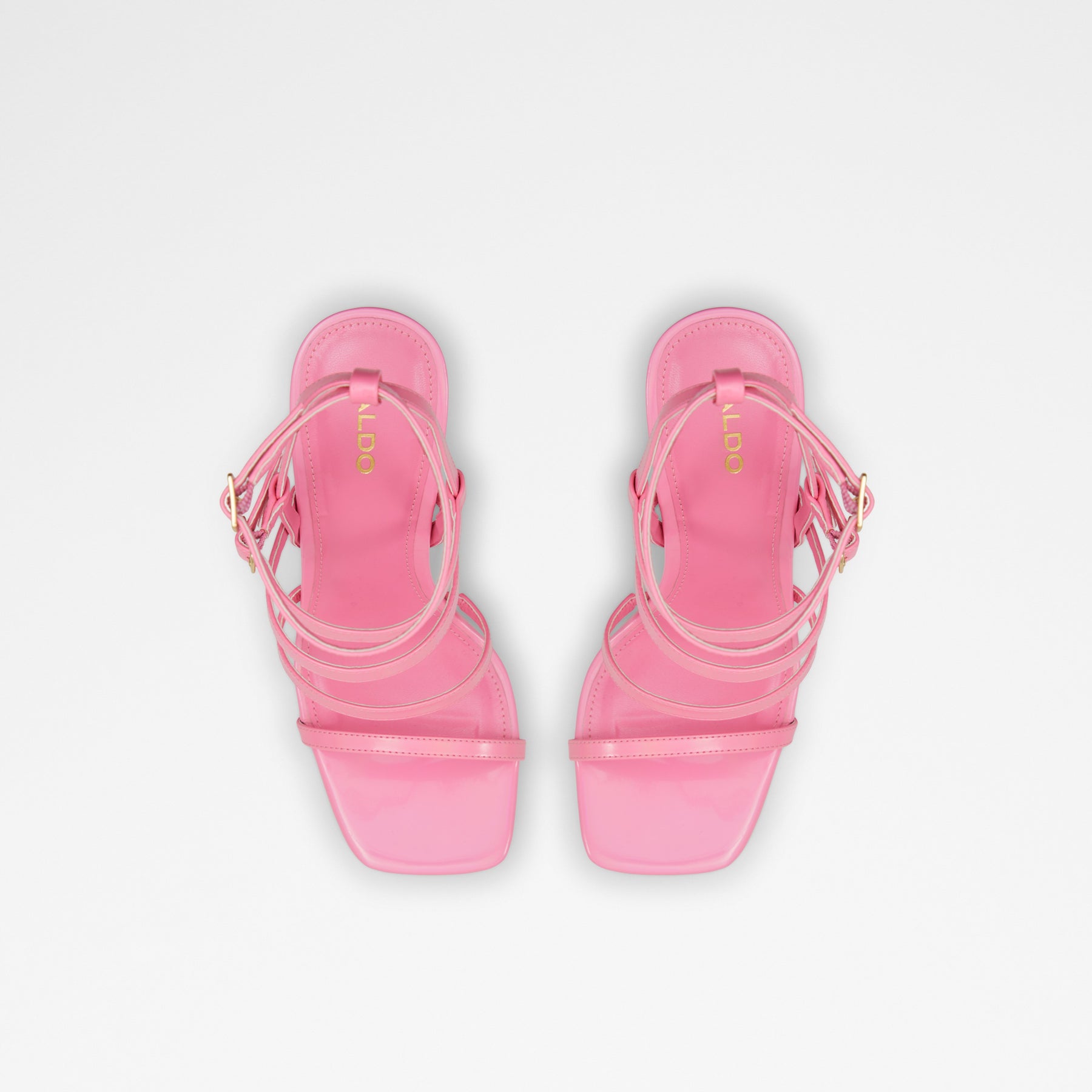 Sandálias DARLING para mulher, em verniz rosa, de salto em bloco com plataforma e com biqueira quadrada. Com fecho de fivela no tornozelo.