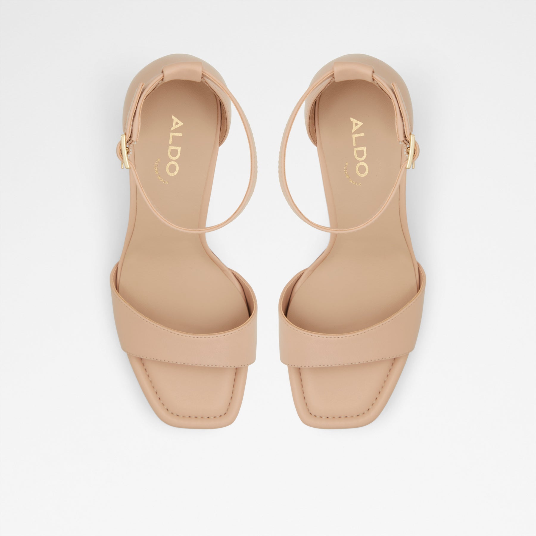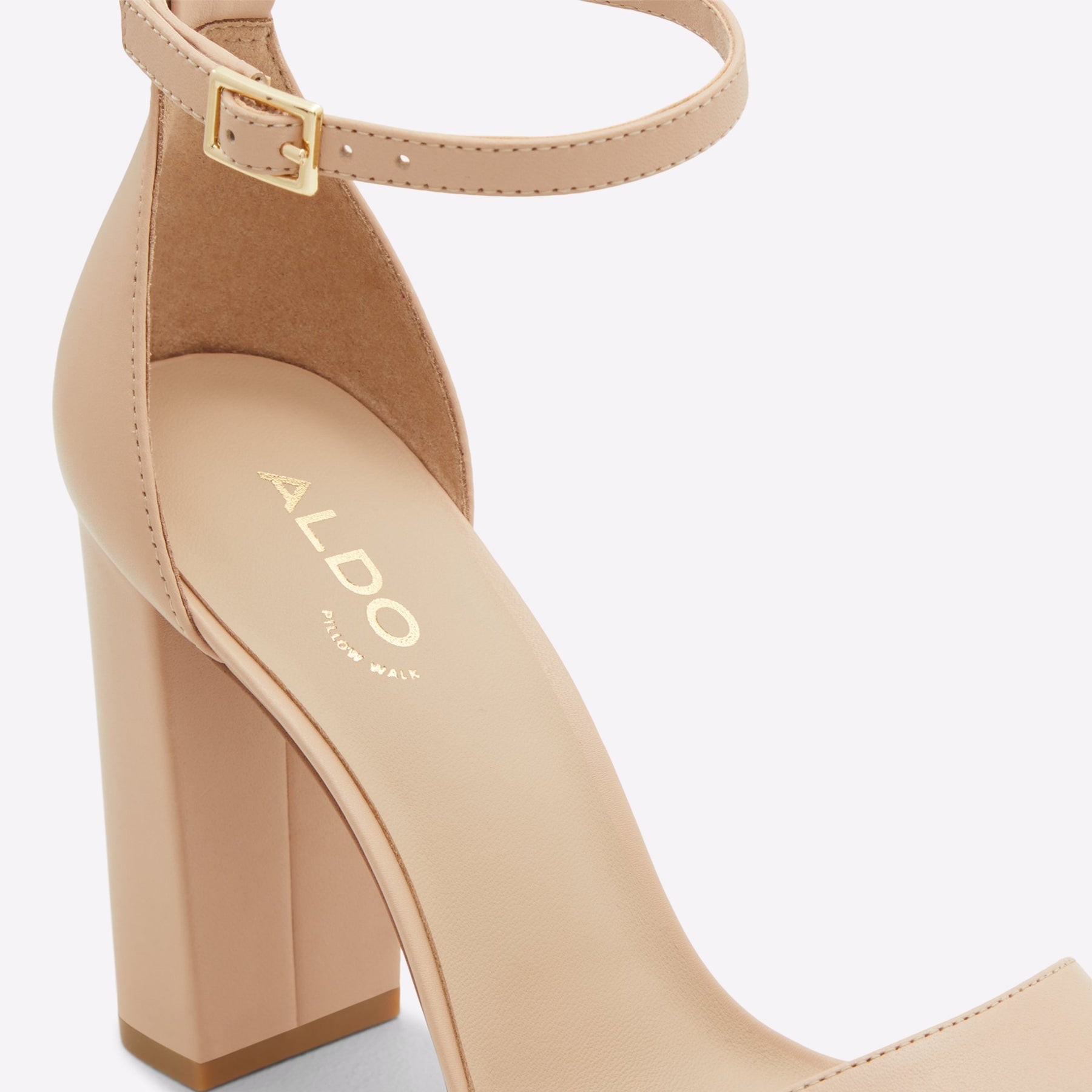 Sandálias ENAEGYN para mulher, em pele, em bege, de salto em bloco e com biqueira quadrada. Com fecho de fivela no tornozelo.