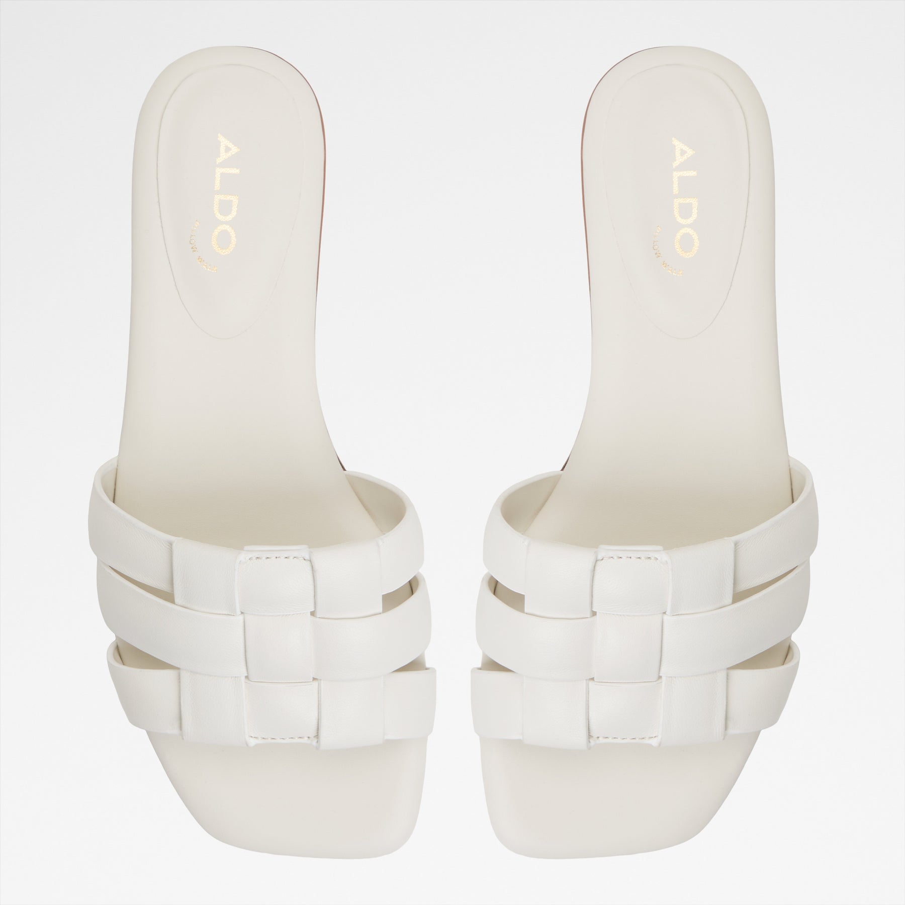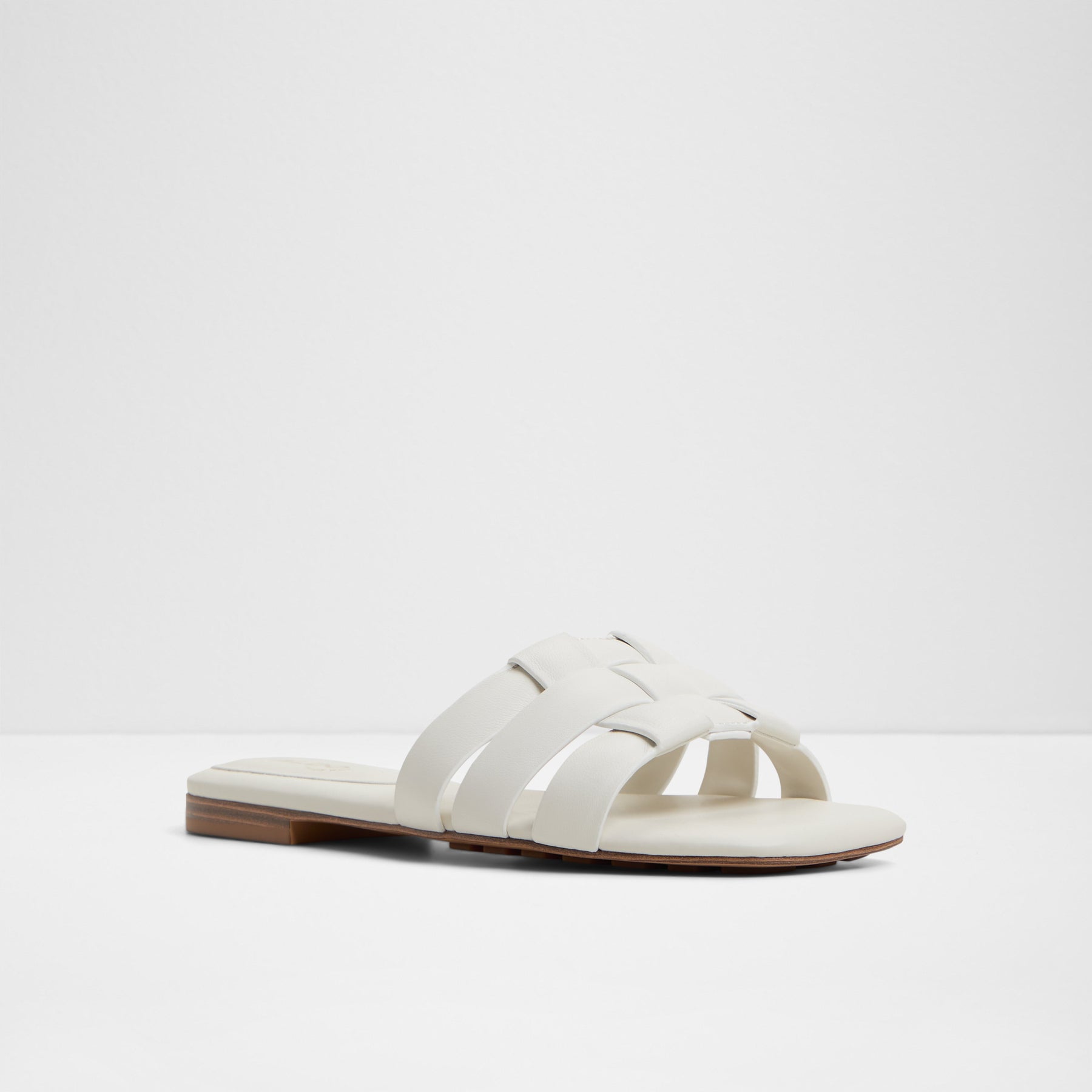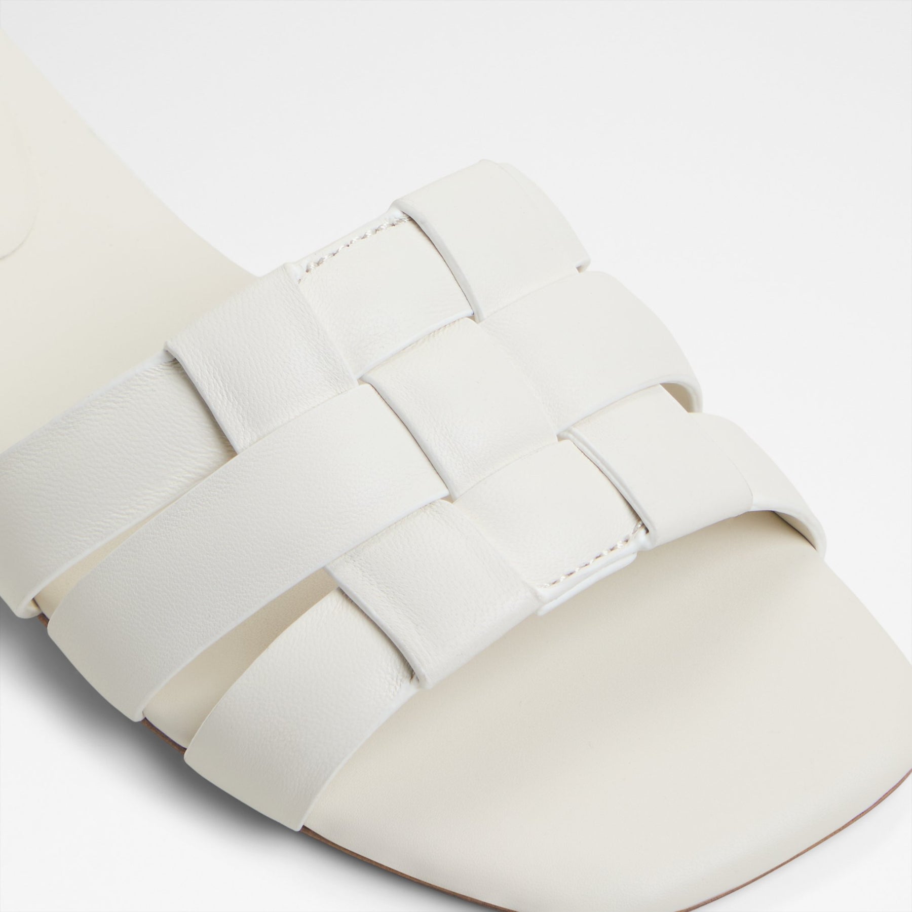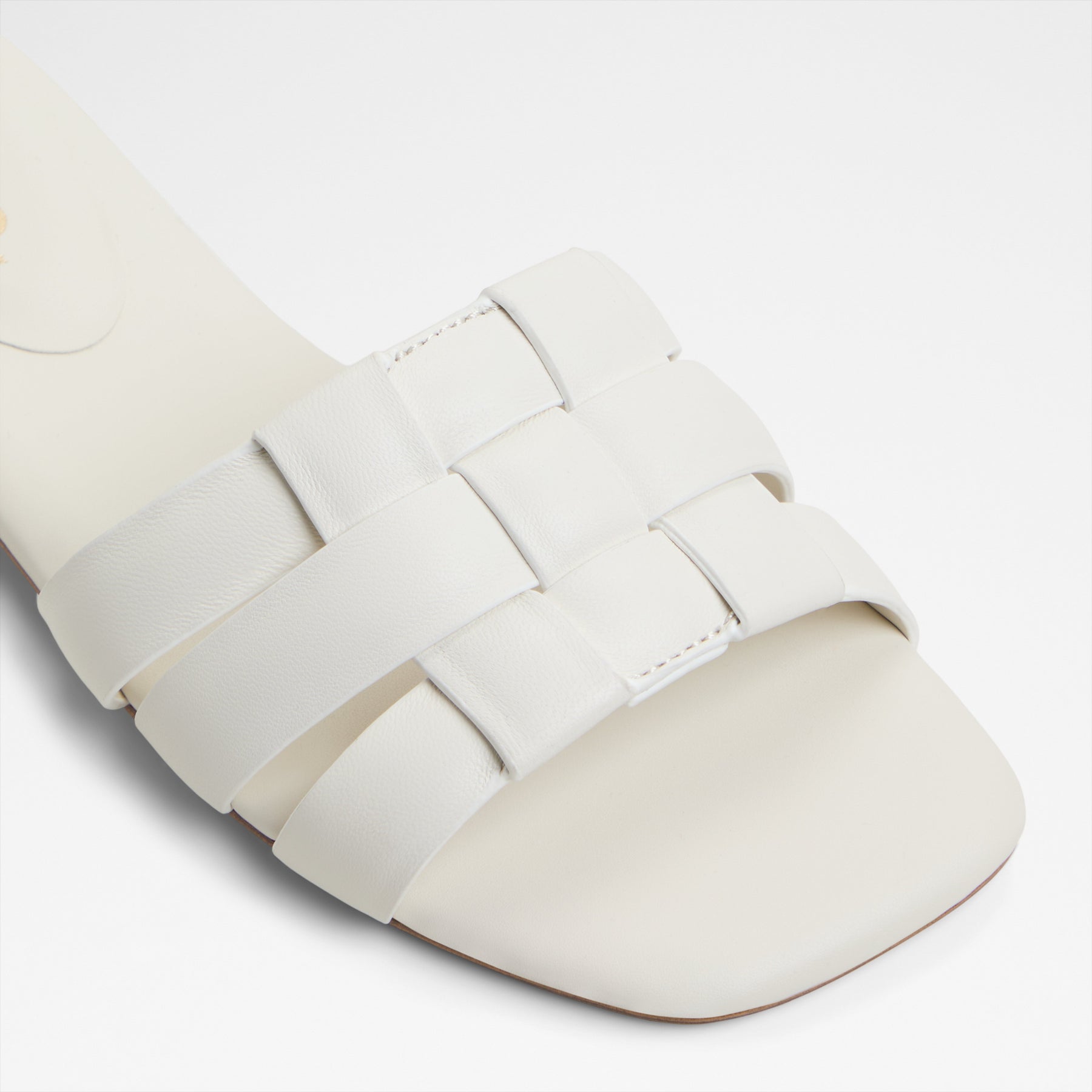 Sandálias rasas GOTOSANDAL para mulher, em pele, em branco, com biqueira quadrada e uma textura entrançada.