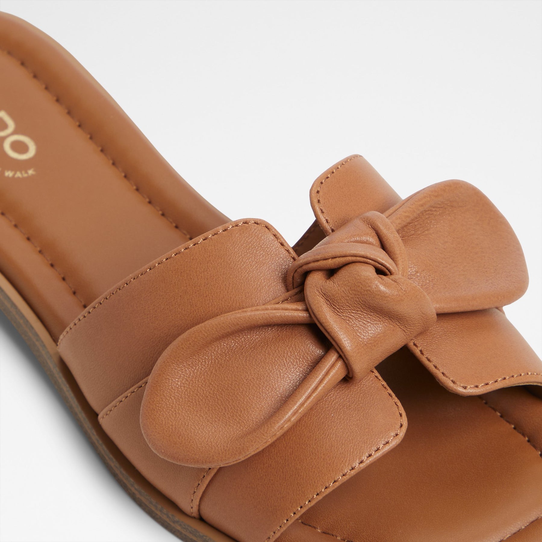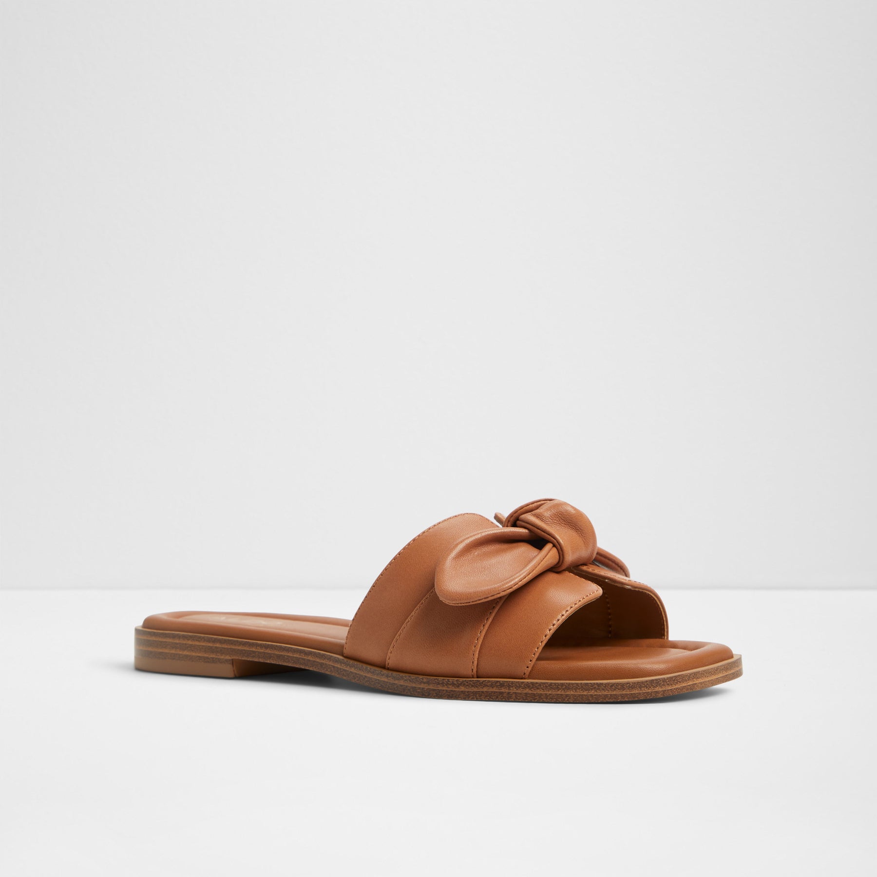 Sandálias rasas LAVINIA para mulher, em pele, em cognac, com biqueira quadrada e aplique em forma de laço.