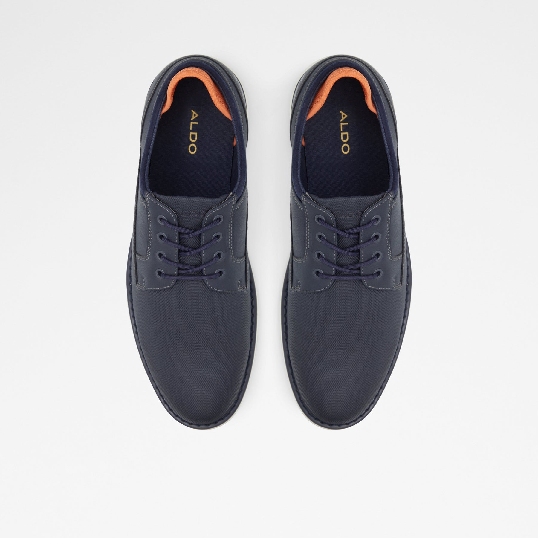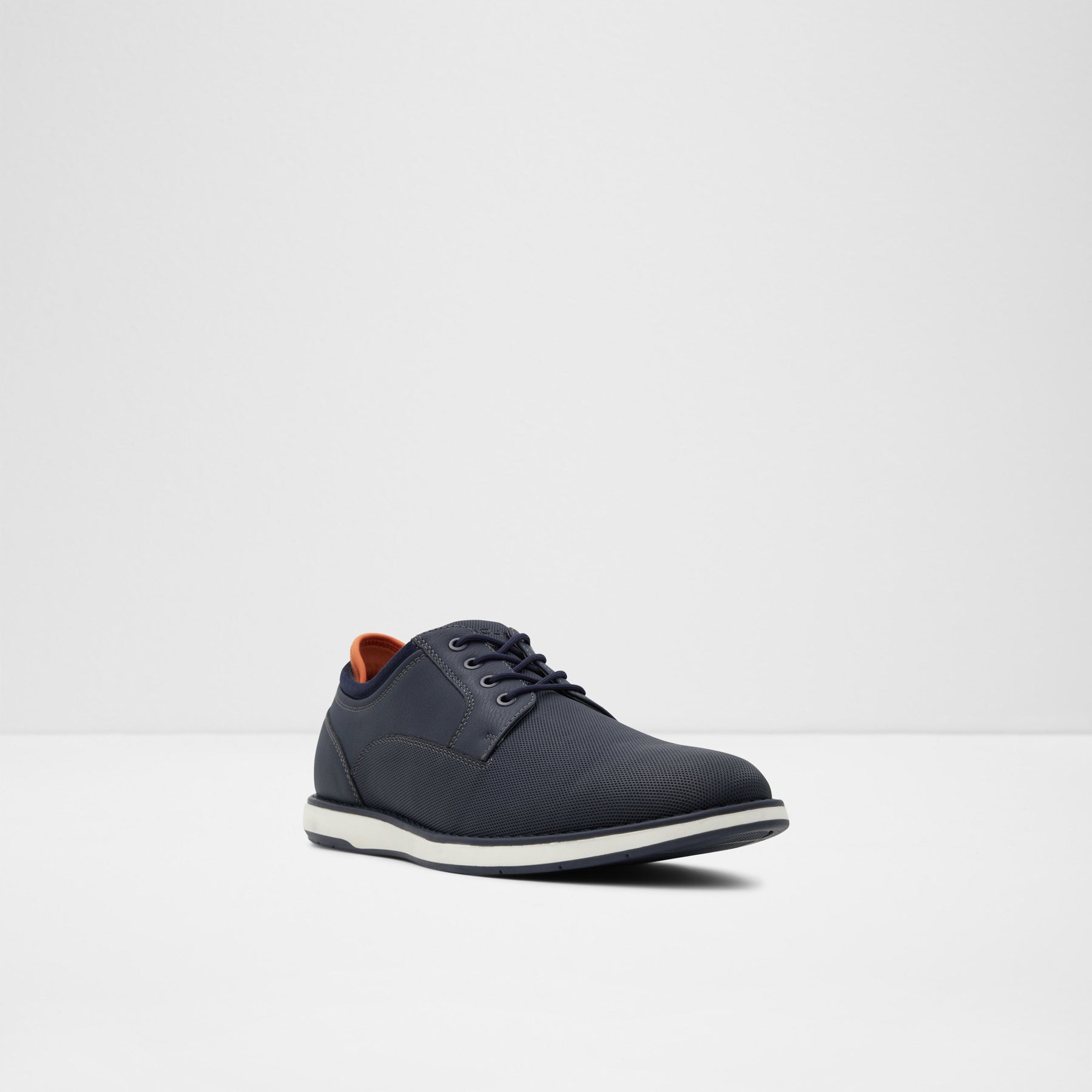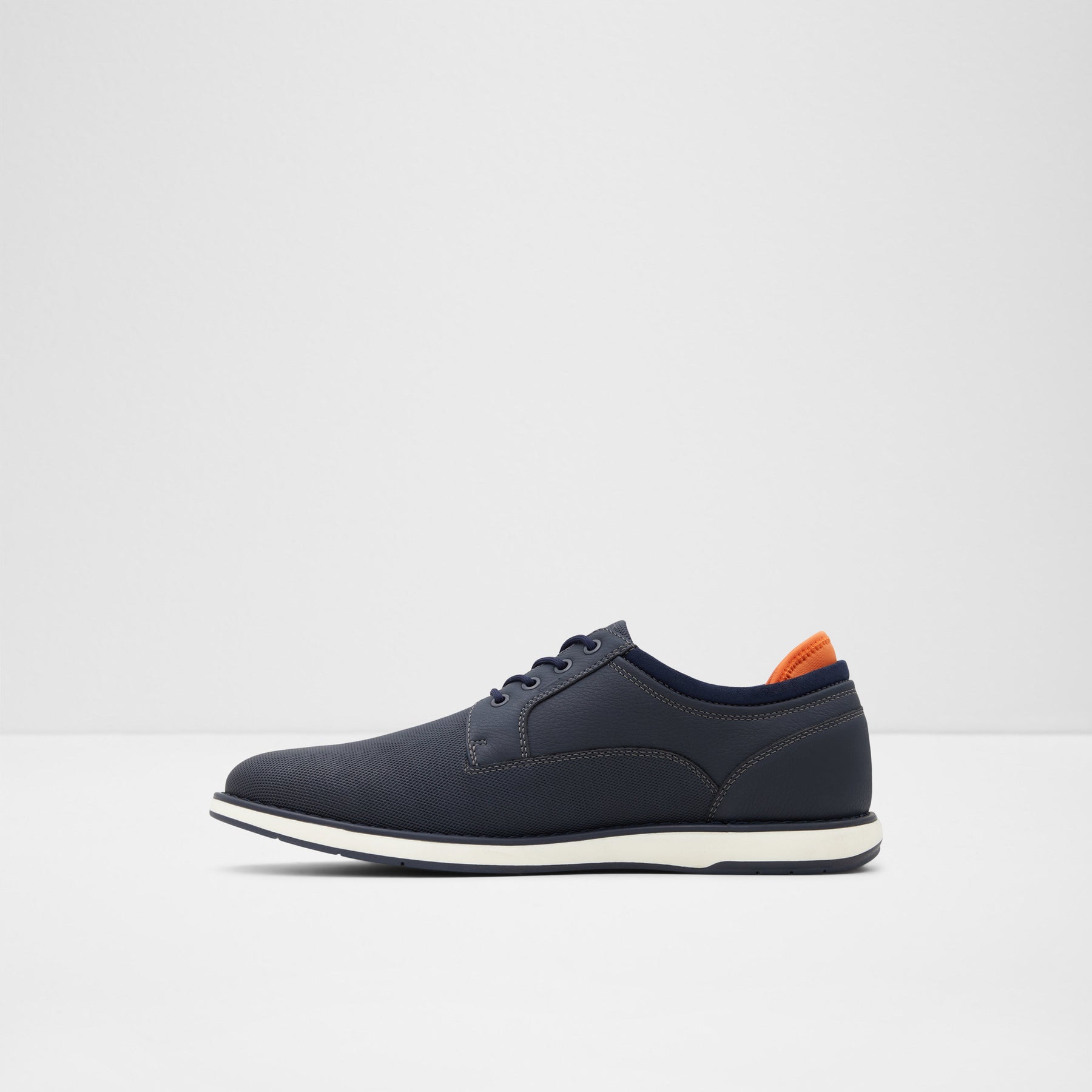 Sapatos casuais LUCA para homem, em azul marinho e com biqueira amendoada. Com fecho de cordões e sola branca.