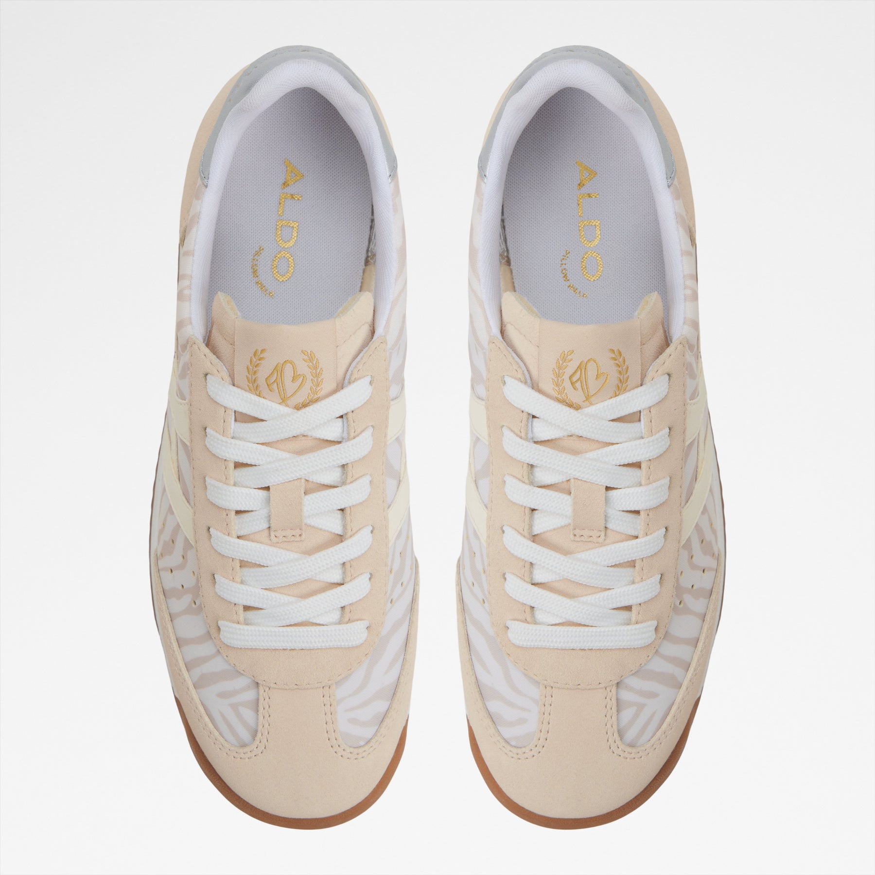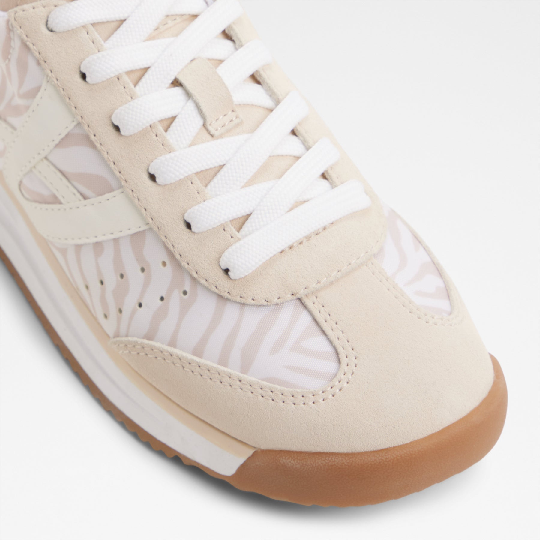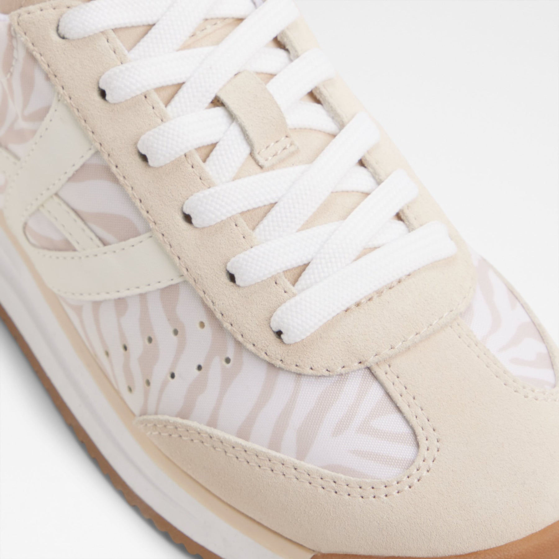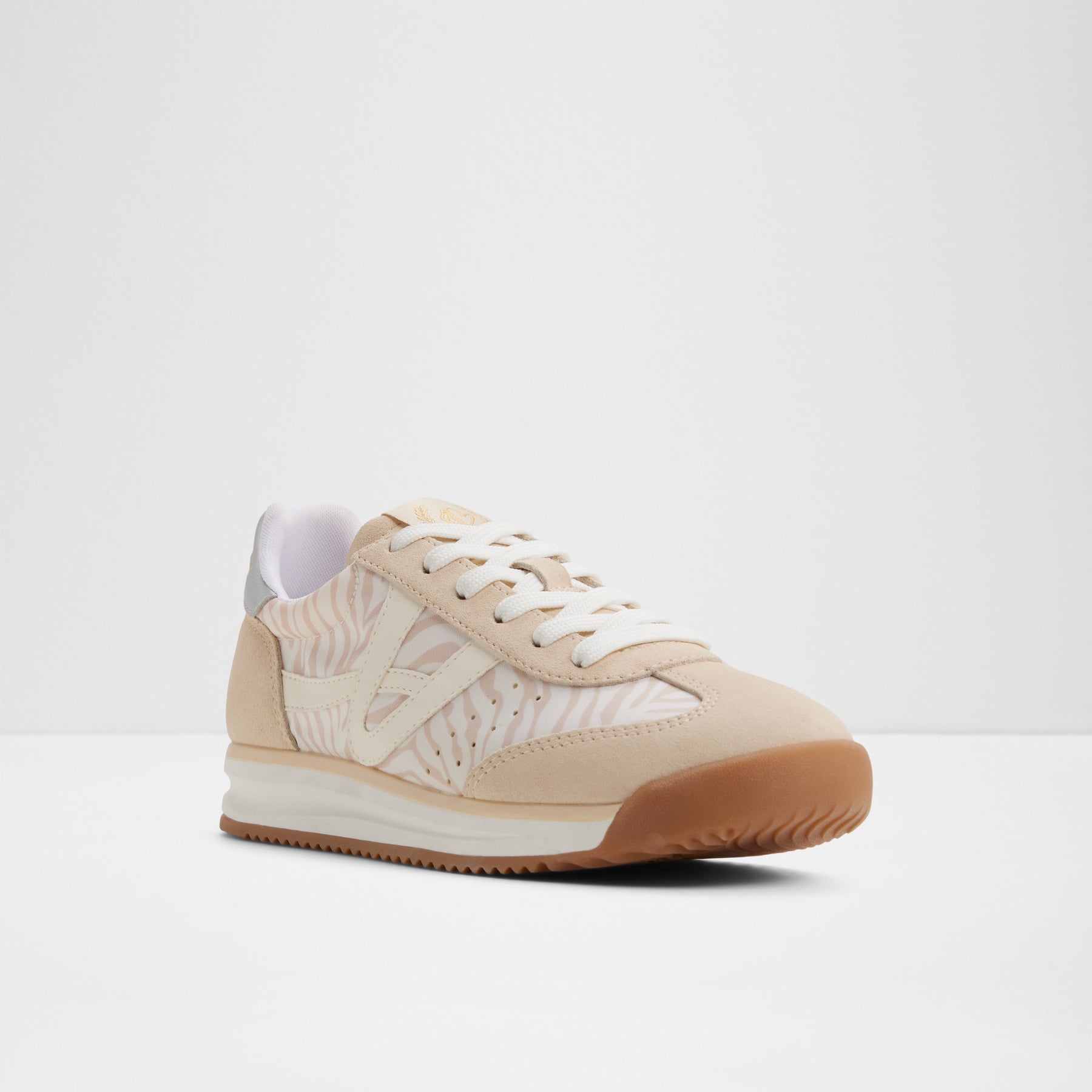 Sapatilhas rasas STEPCOUNT para mulher, em bege, com biqueira redonda e um padrão de pele animal. Com fecho de cordões.