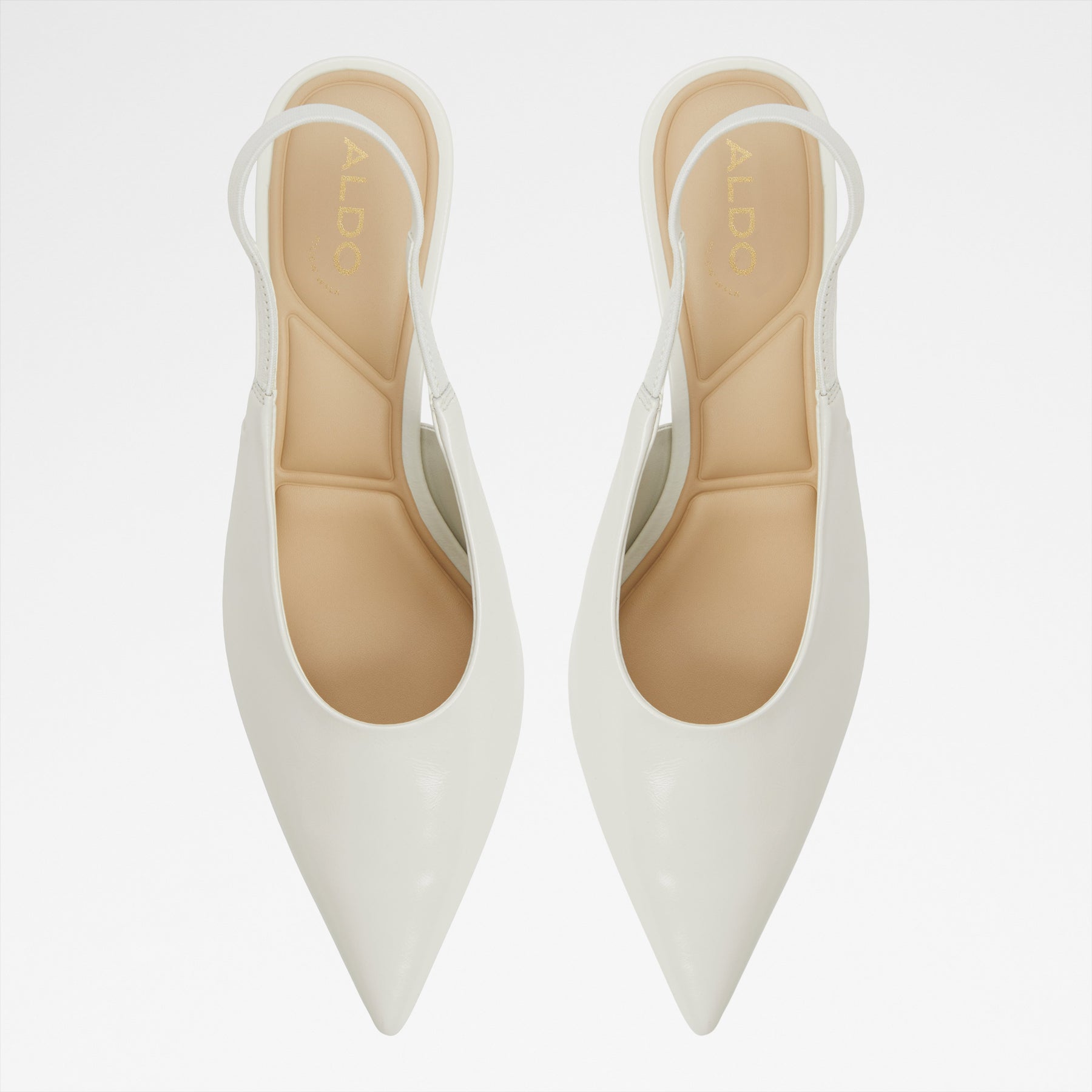 Sapatos OCEWETH para mulher, em pele, em branco, de salto em funil e com biqueira pontiaguda. Com tira atrás do calcanhar.