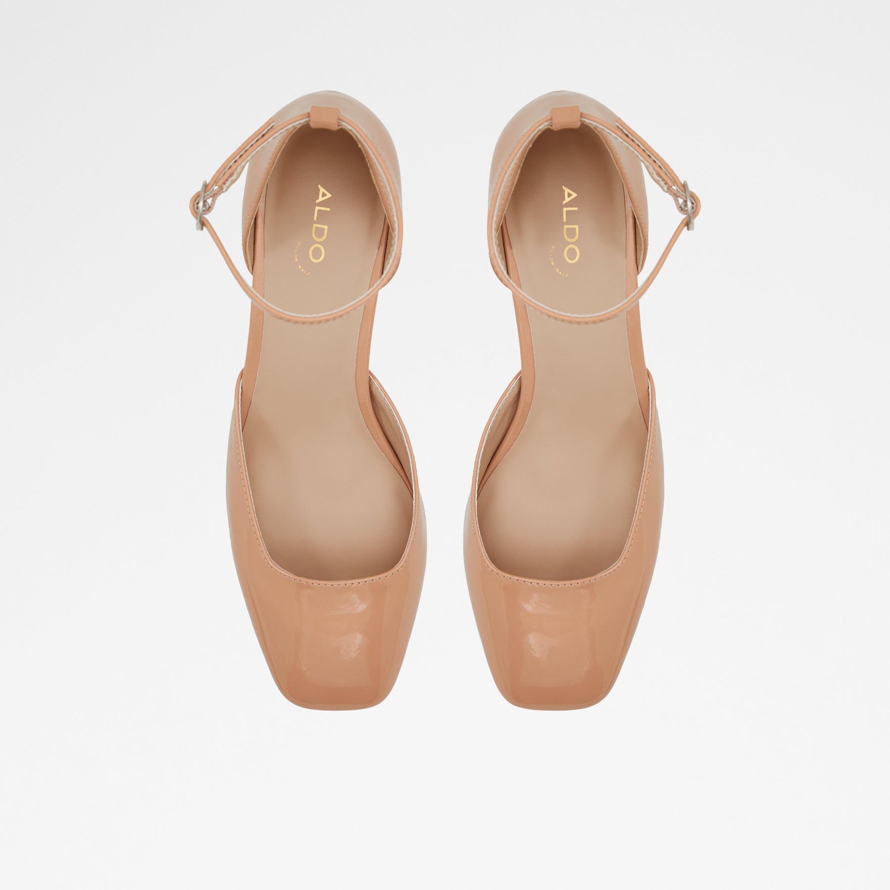 Sapatos em verniz bege, salto em bloco - KINDAH