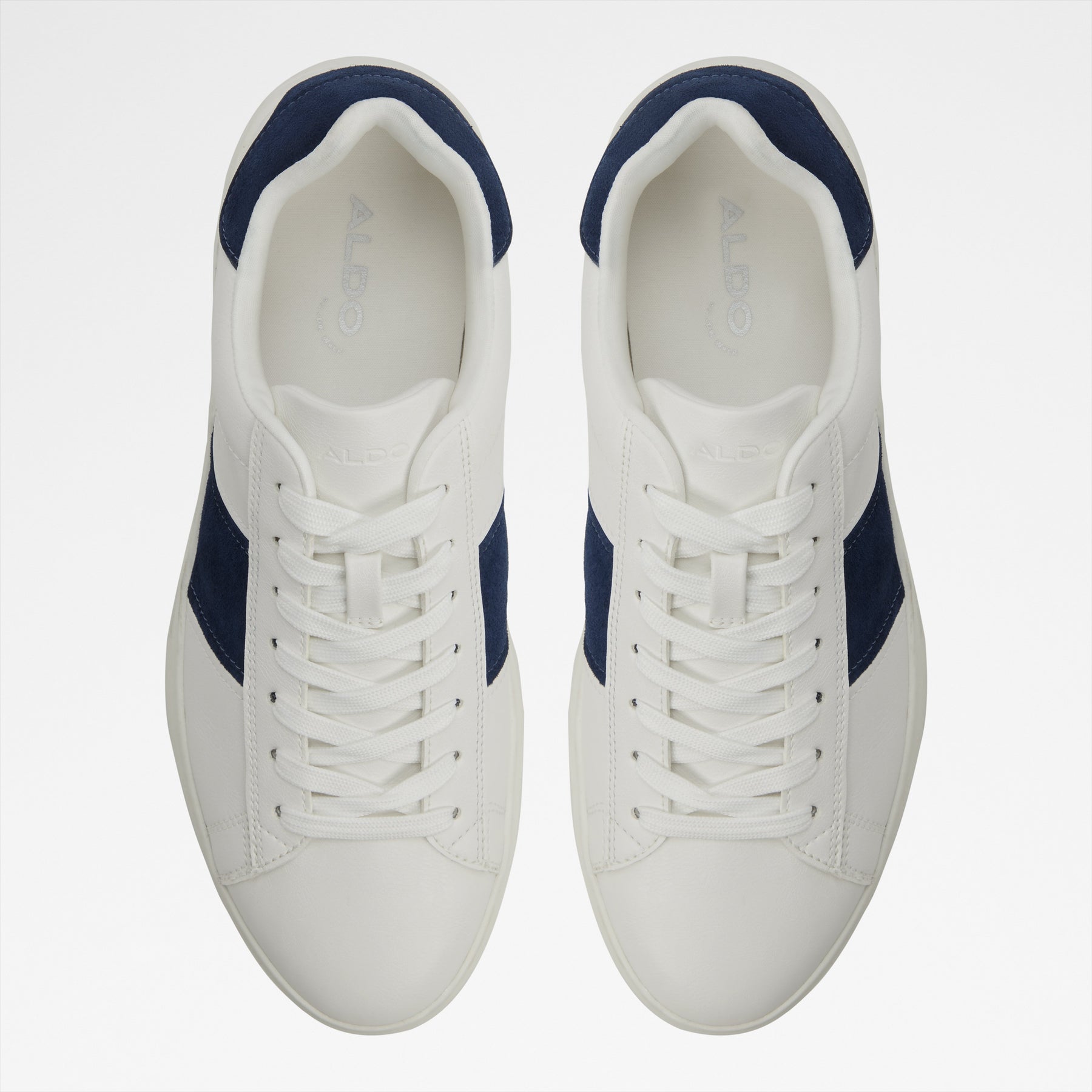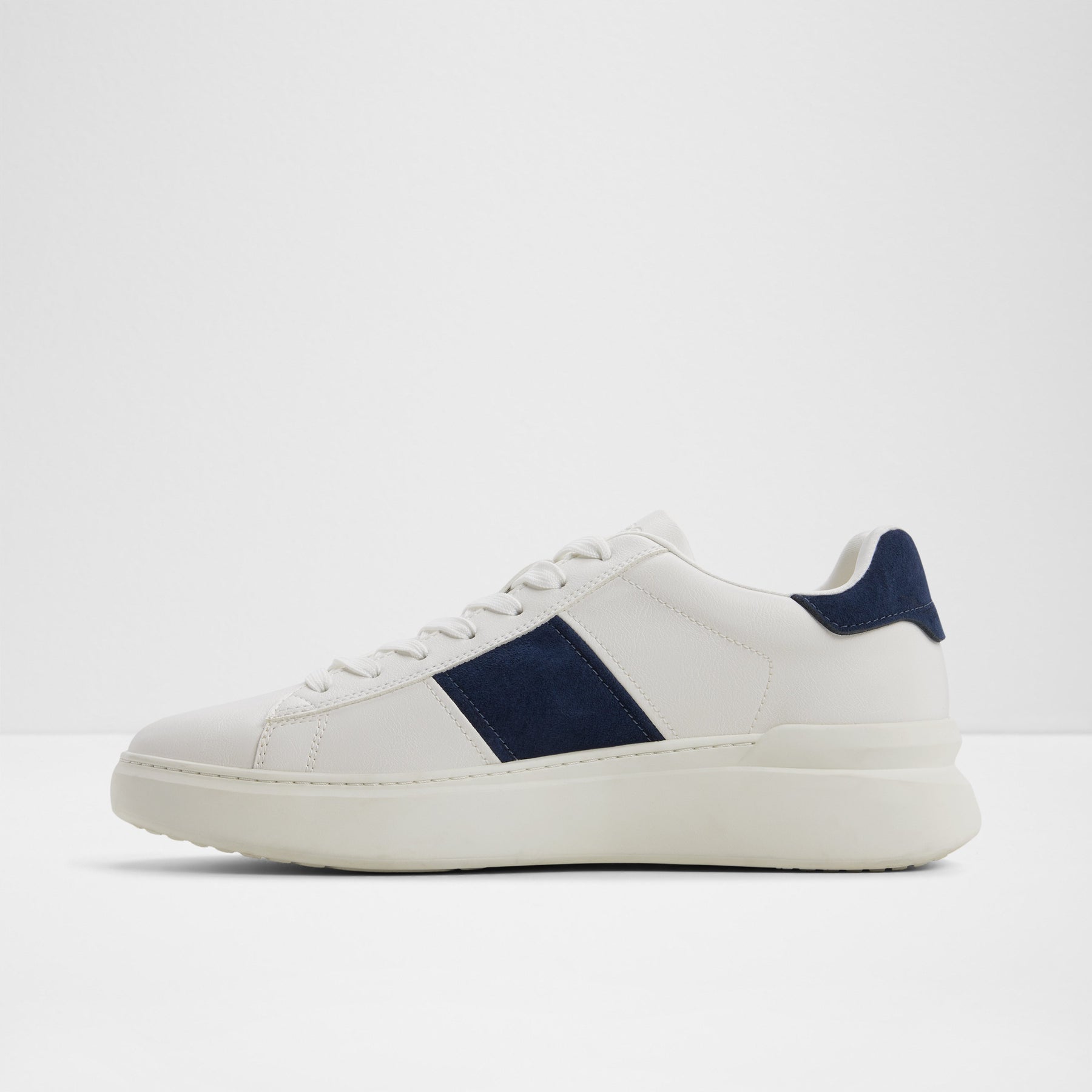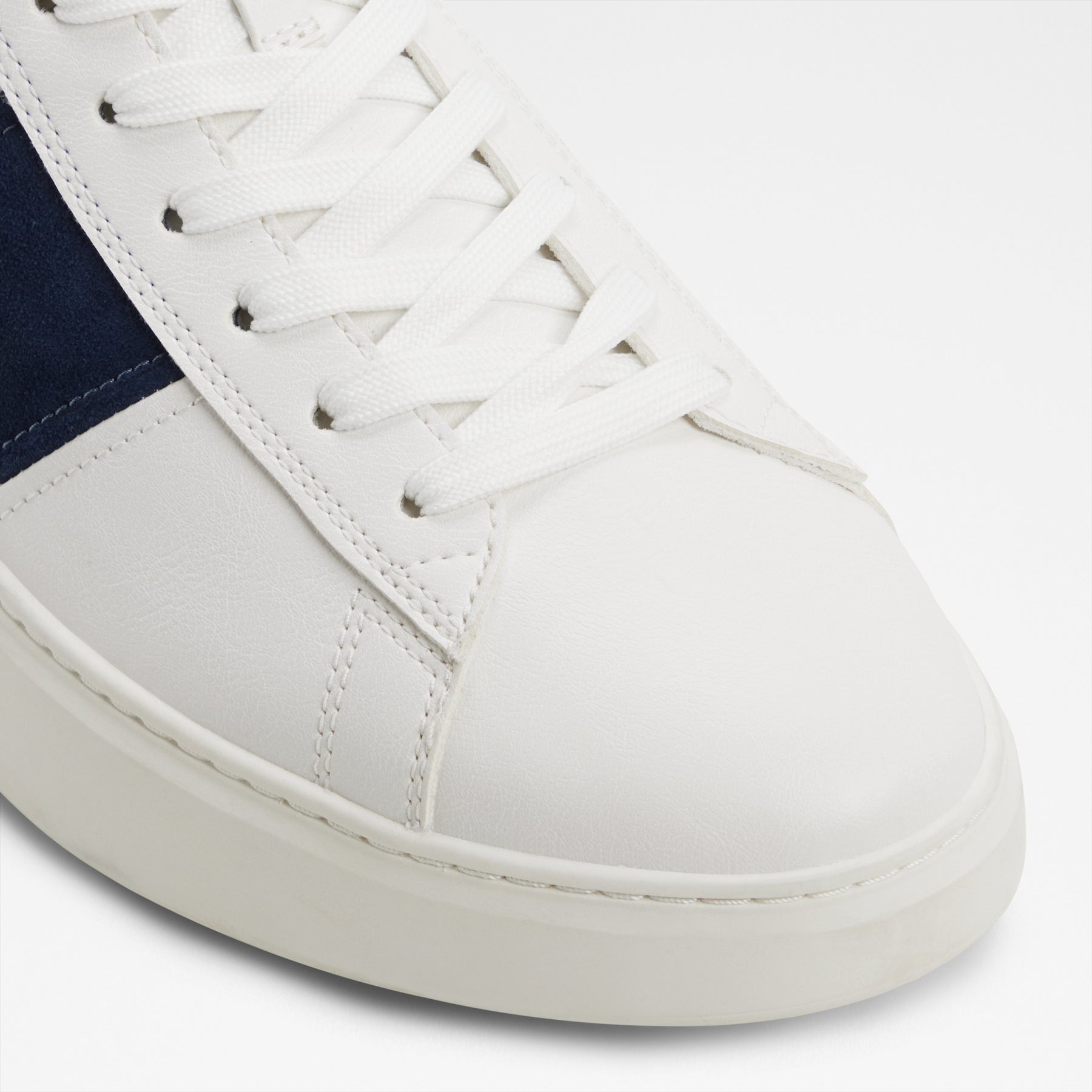 Sapatilhas ADYN para homem, em branco, com biqueira redonda e detalhe colorido em azul marinho. Com fecho de cordões.