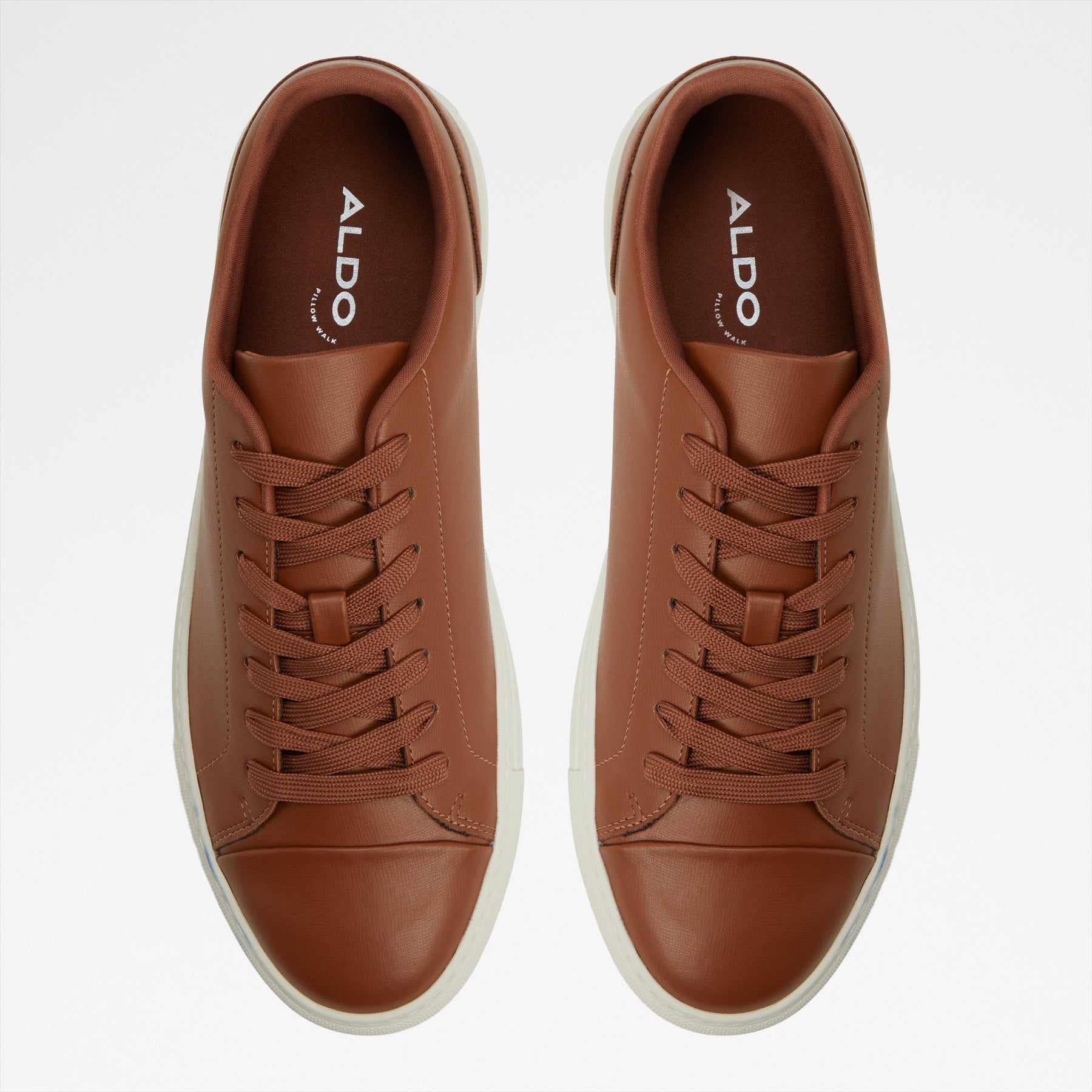 Sapatilhas BELFORD para homem, em cognac e com biqueira redonda. Com fecho de cordões e sola branca.