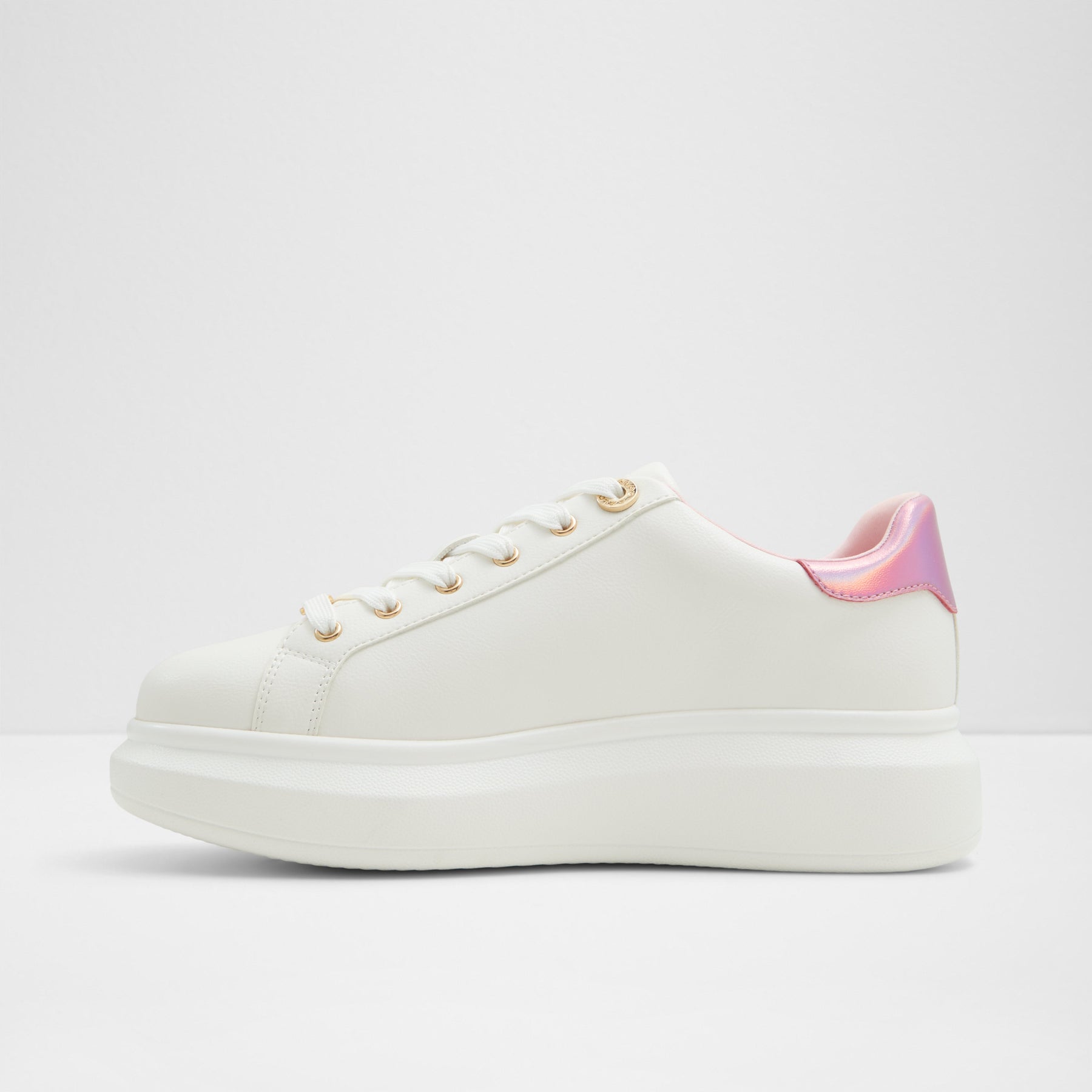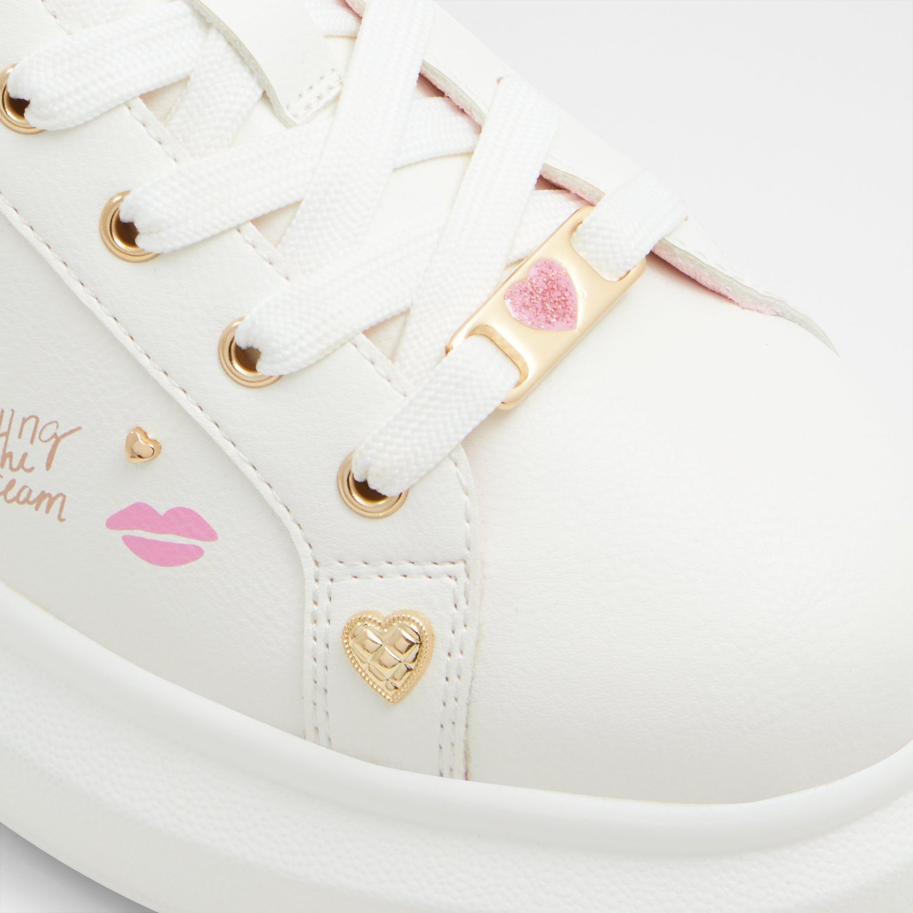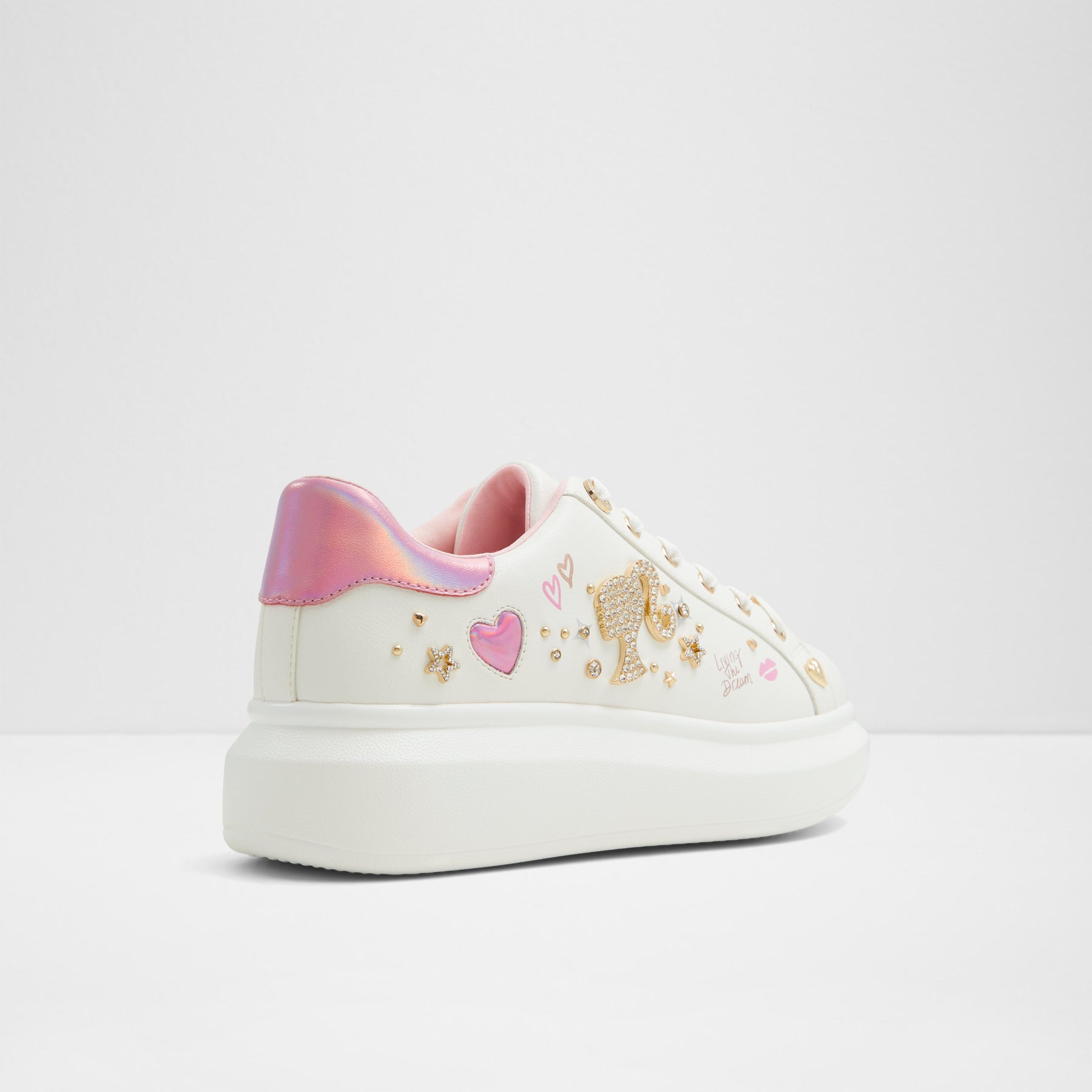 Sapatilhas rasas BARBIESPEC para mulher, em branco, com biqueira redonda e pedras brilhantes. Com fecho de cordões. Coleção exclusiva Barbie x ALDO. Complete o seu look aqui.