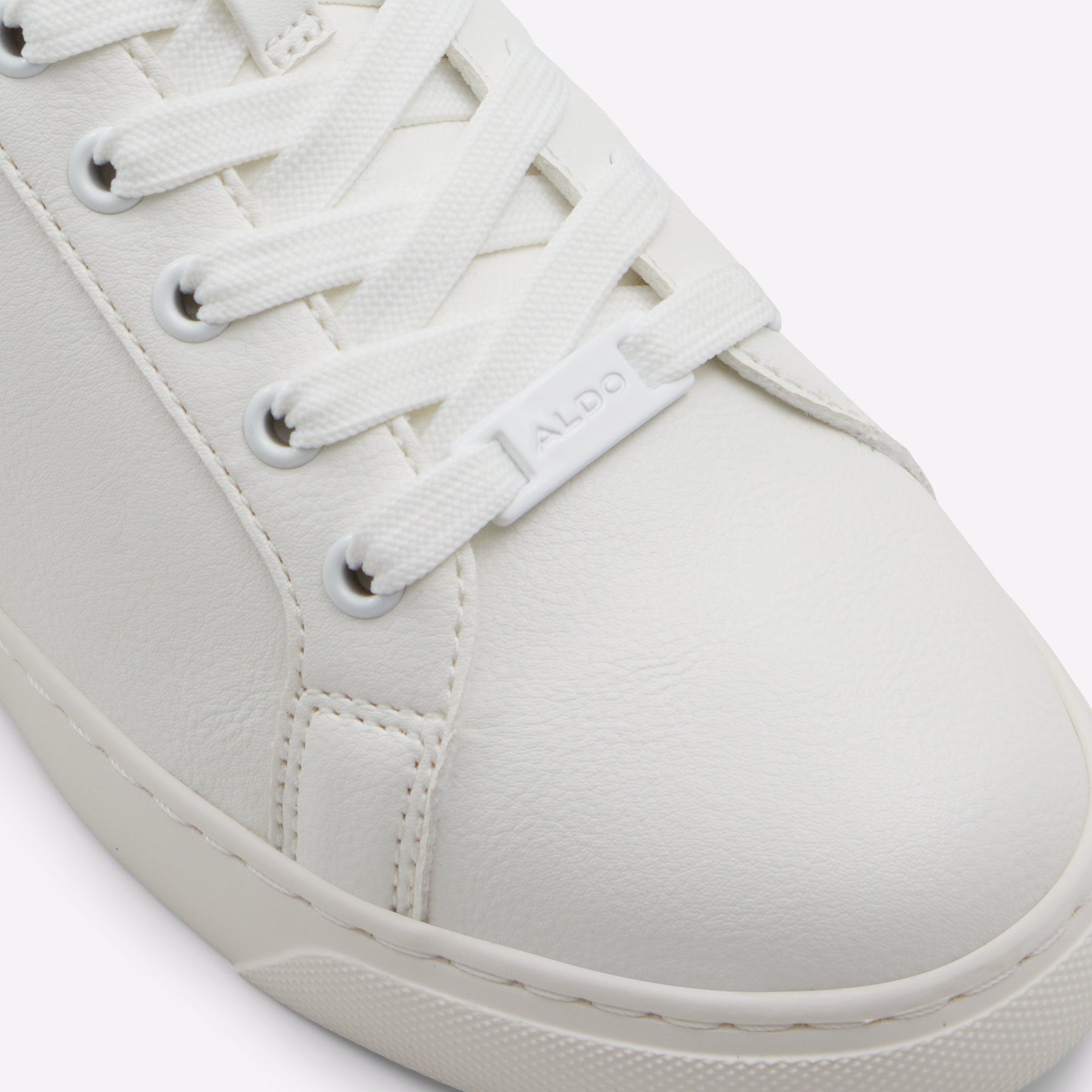 Sapatilhas rasas DILATHIELLE para mulher, em branco, com biqueira redonda e um aplique metálico. Com fecho de cordões.