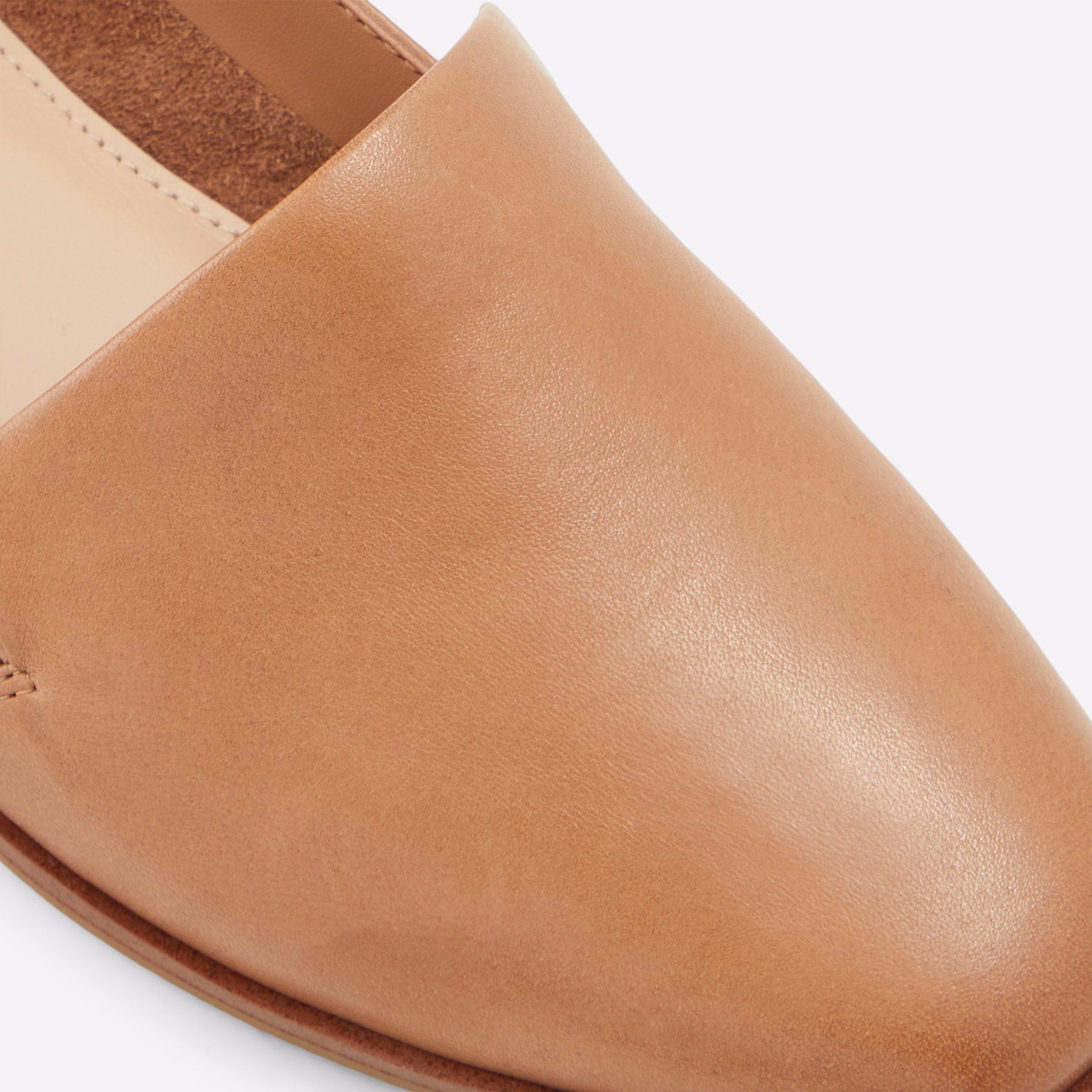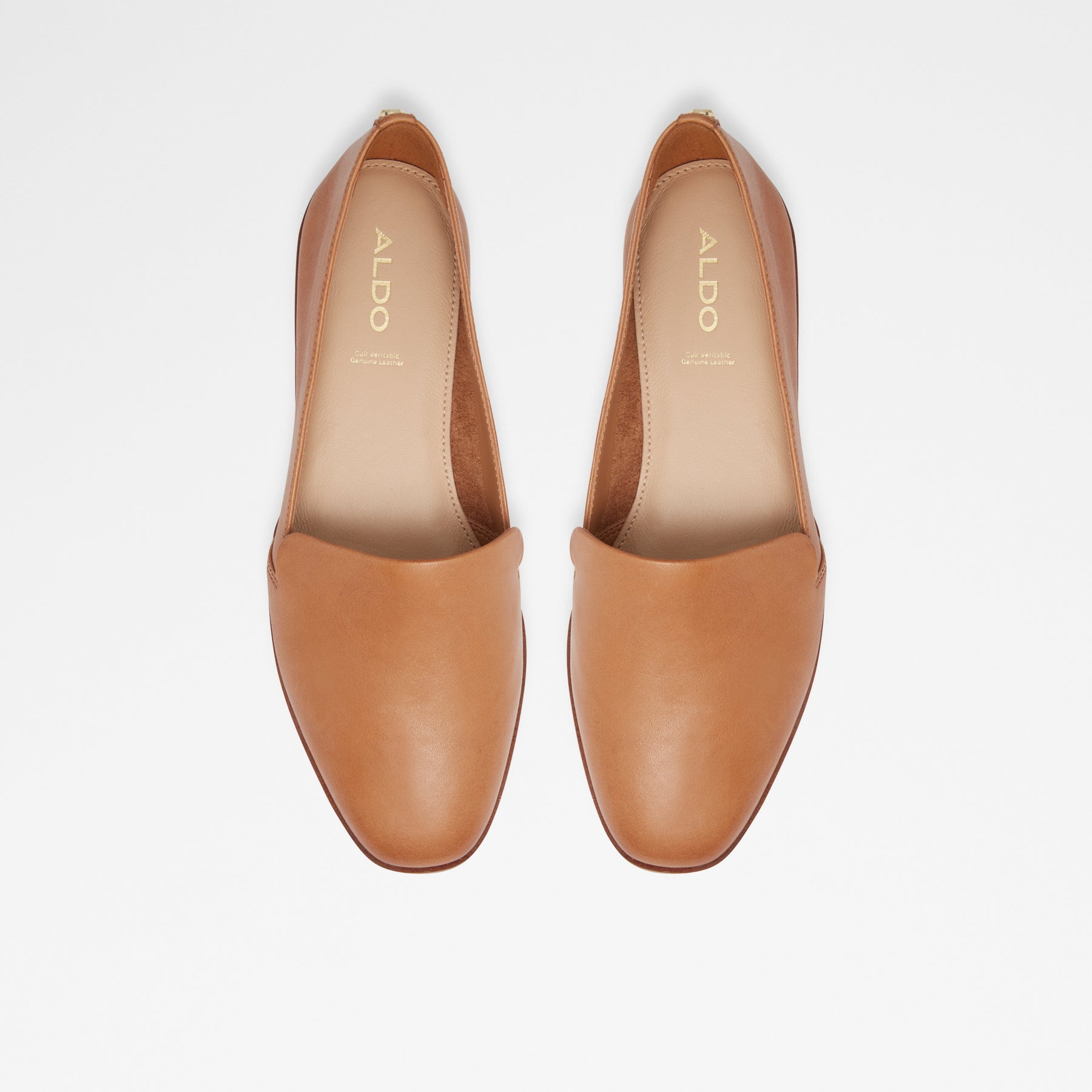Sapatos rasos VEADITH para mulher, em pele, em cognac e com biqueira quadrada.