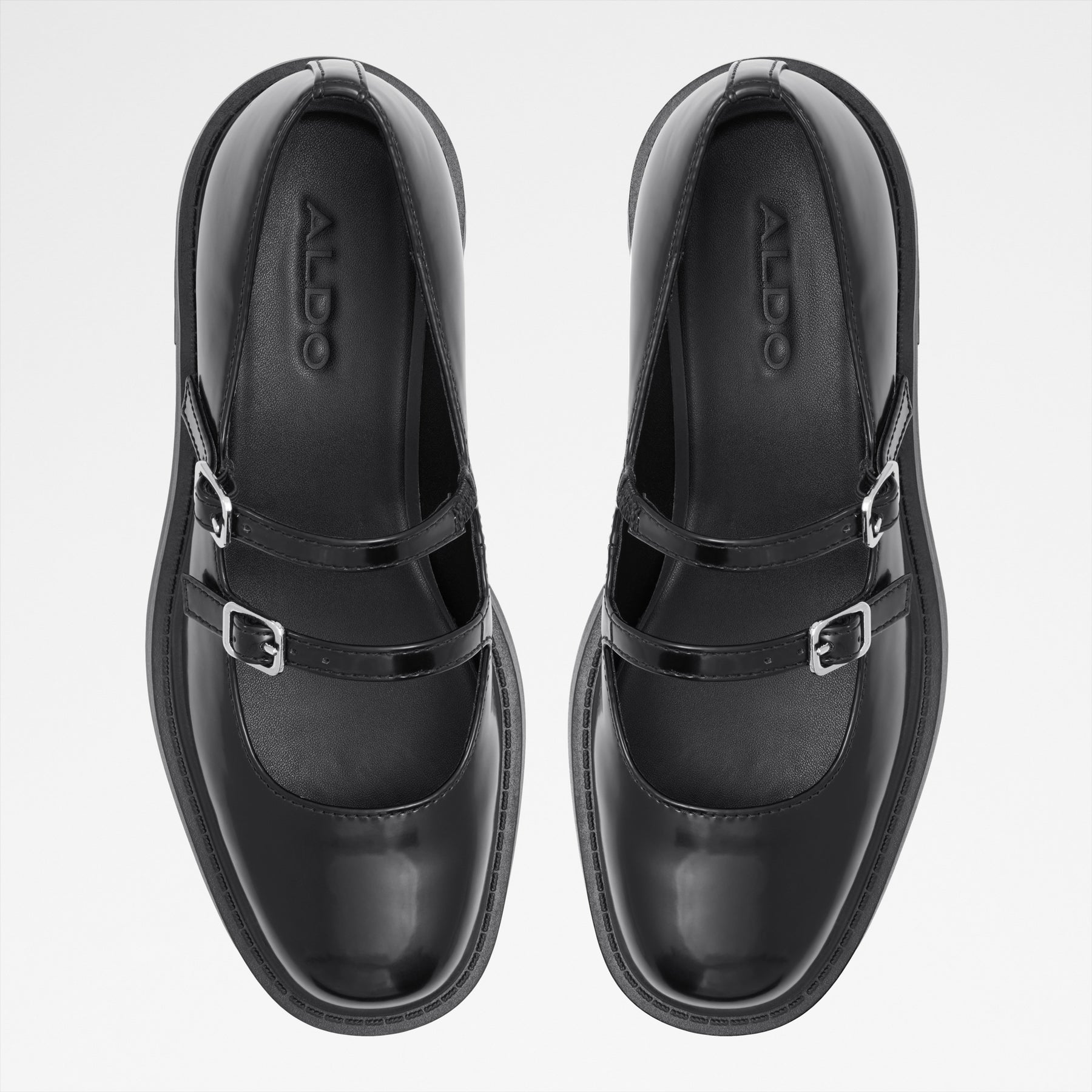 Sapatos rasos MORABY para mulher, em preto, com biqueira redonda e sola com rasto. Com fecho de fivela no peito do pé.