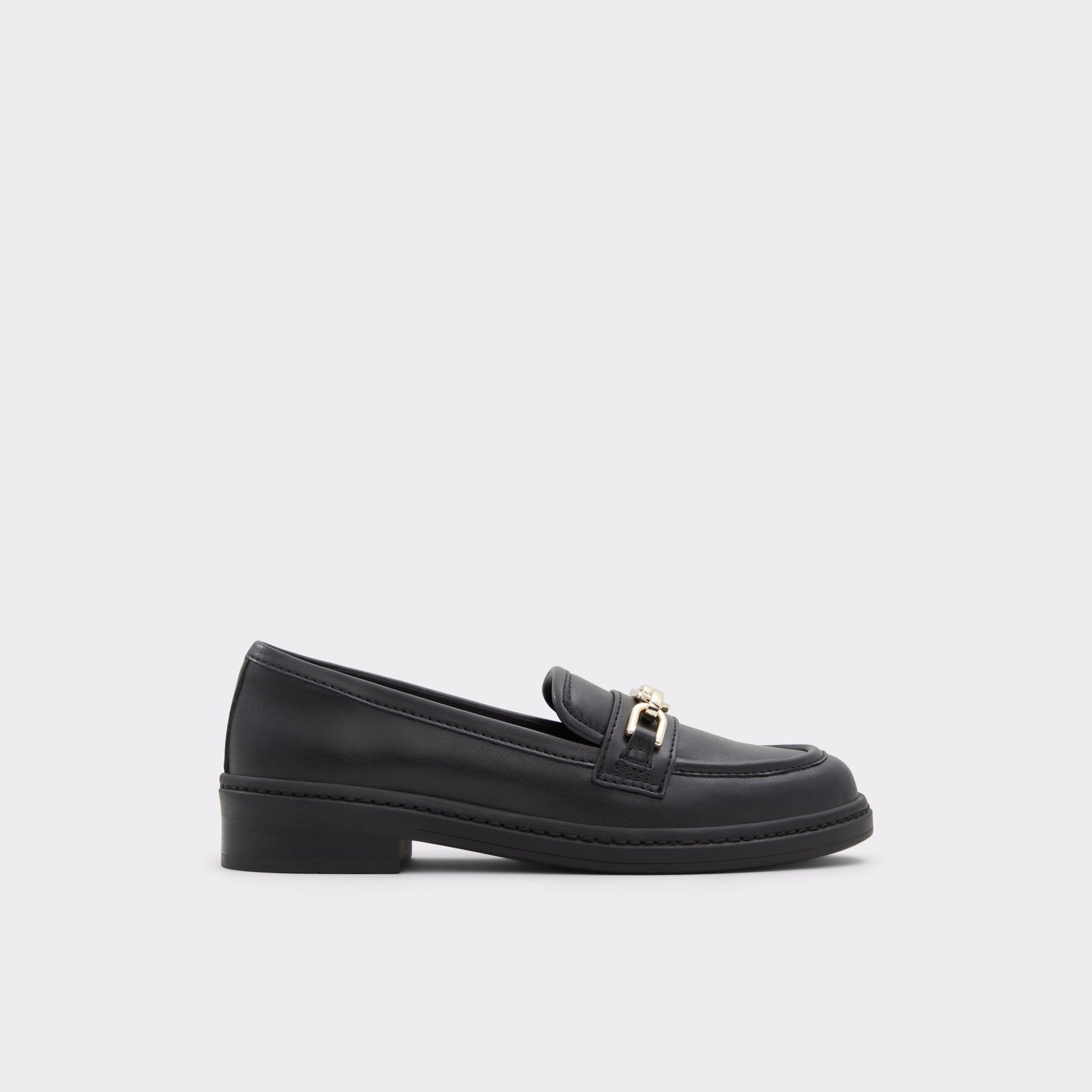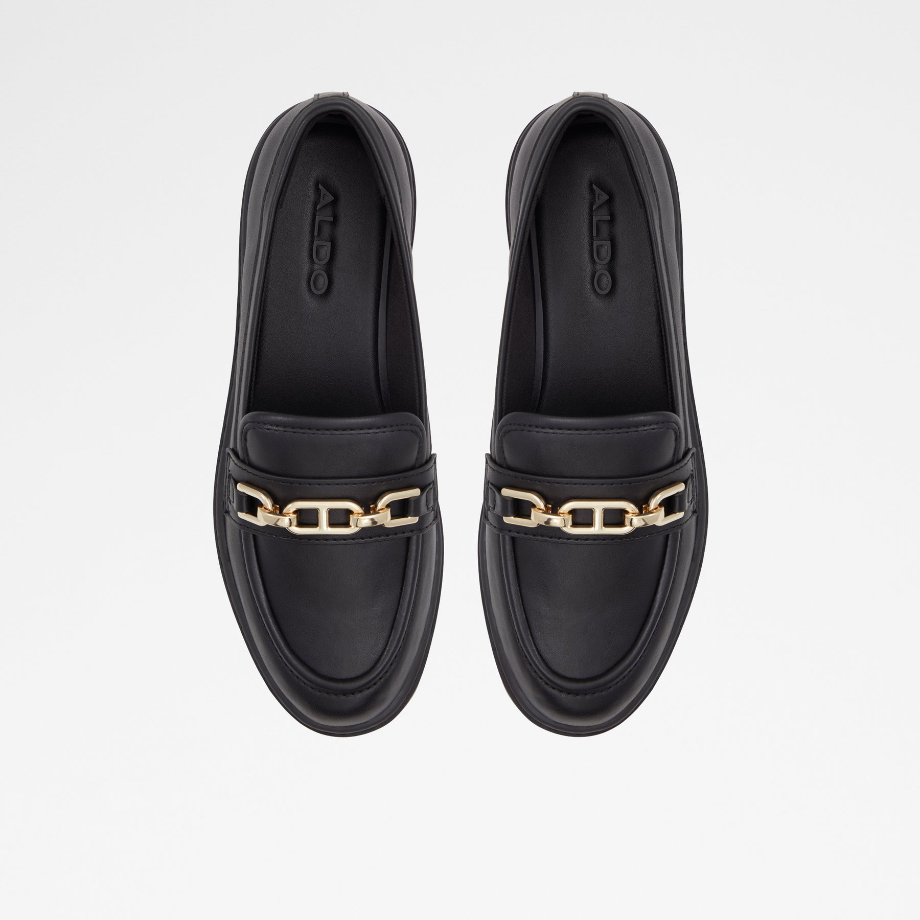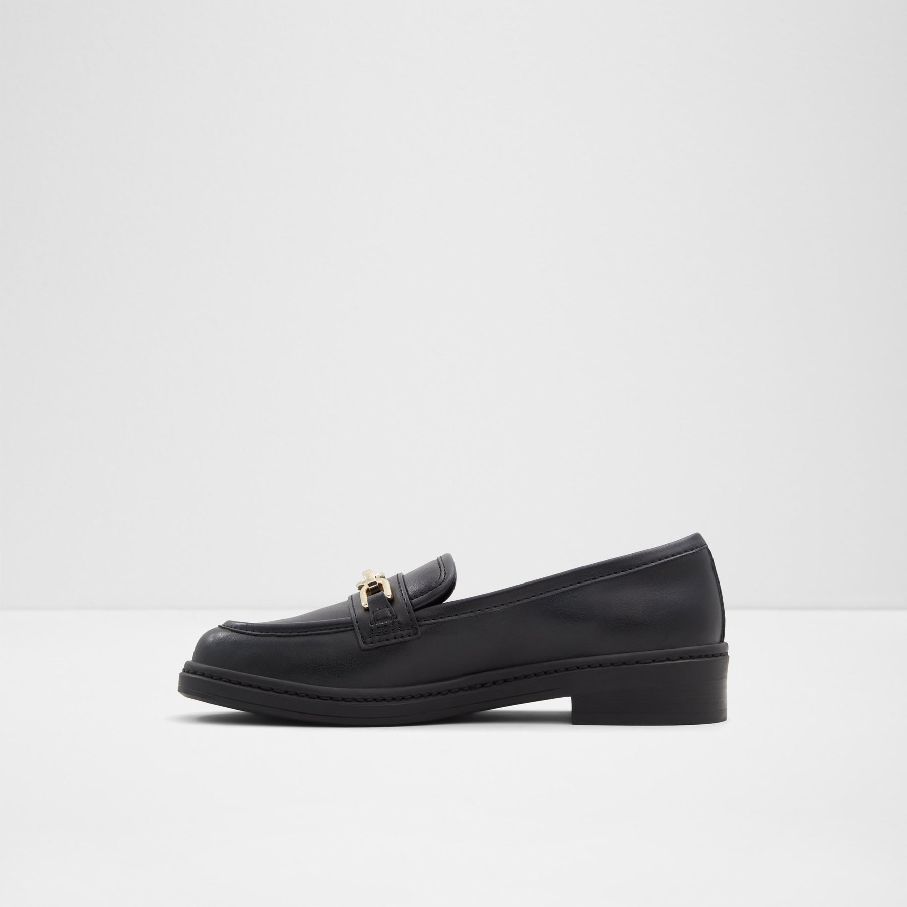 Sapatos rasos TEATRO para mulher, em preto, com biqueira amendoada e um aplique metálico.